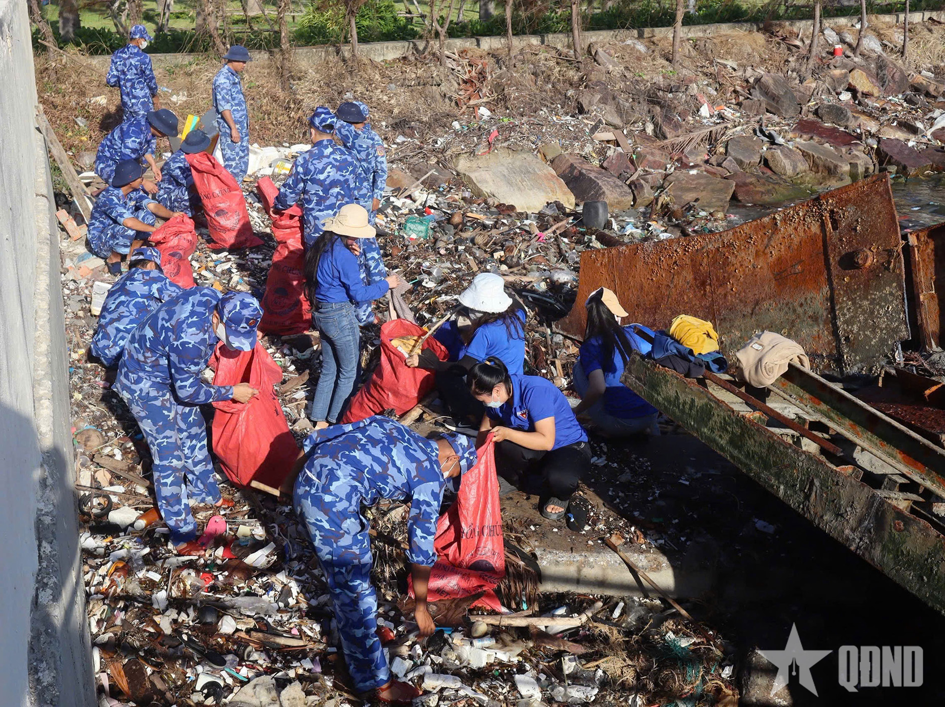 Tuổi trẻ Hải đội 401 phối hợp với Đoàn Đặc khu Phú Quốc ra quân "Ngày thứ Bảy tình nguyện" tổng dọn vệ sinh môi trường biển.