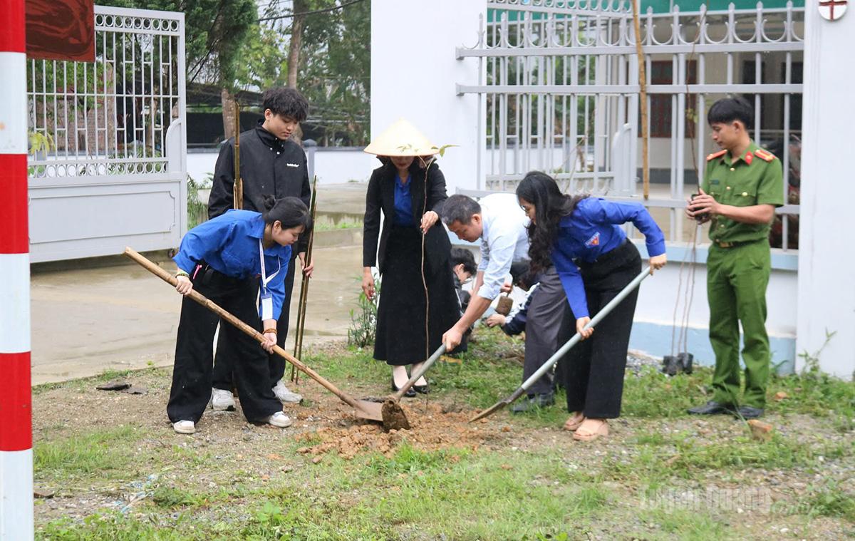 Các tình nguyện viên và cán bộ địa phương tham gia trồng “Tuyến đường hoa thanh niên”.