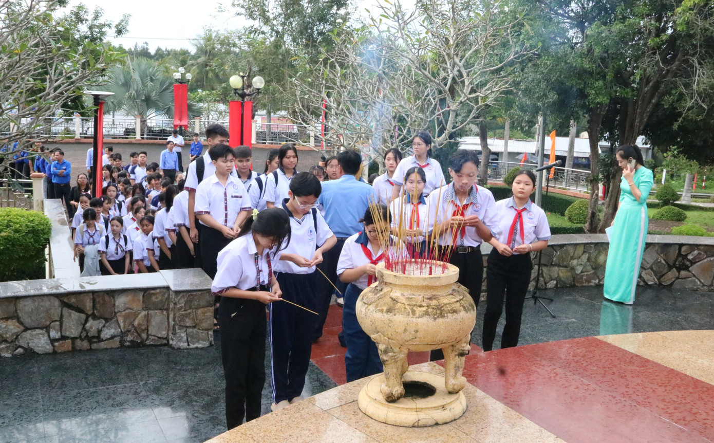 Học sinh, đoàn viên, thanh niên dâng hương tại Khu lưu niệm Thủ tướng Võ Văn Kiệt.