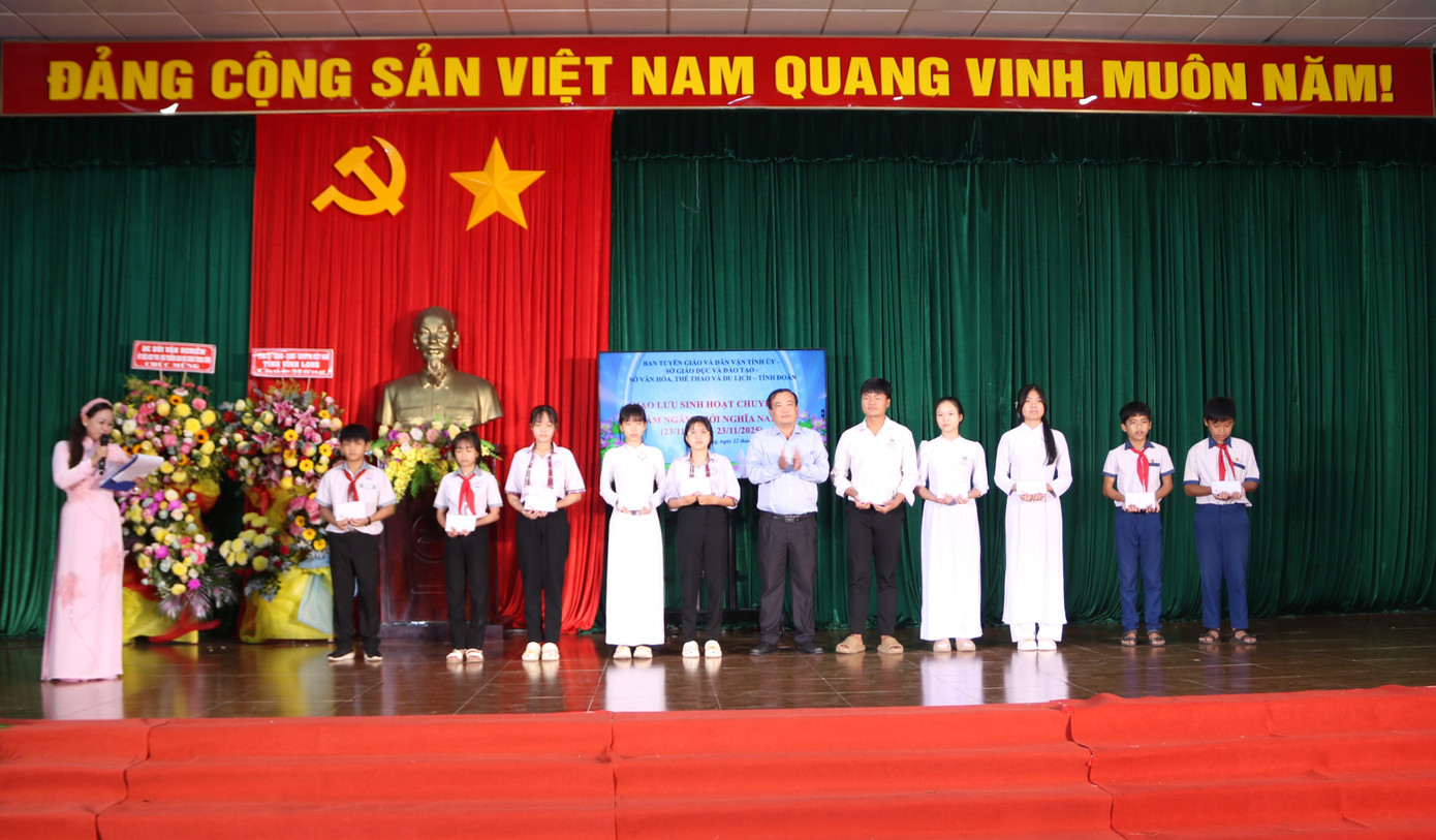 Ban tổ chức trao quà tặng các học sinh có hoàn cảnh khó khăn học giỏi tại xã Trung Thành.