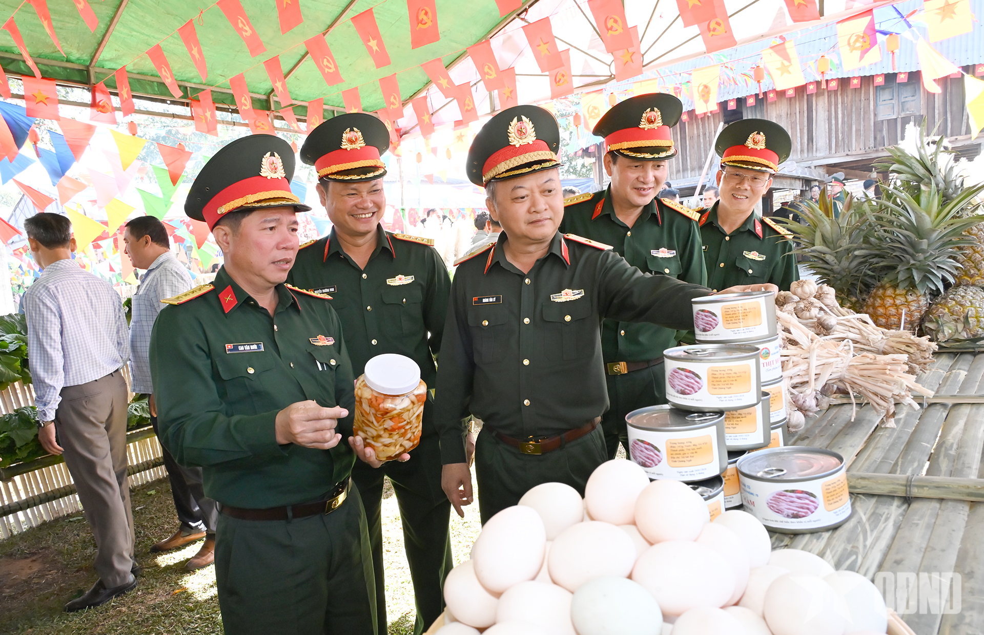 Thiếu tướng Hoàng Văn Sỹ và lãnh đạo các cơ quan Quân khu 5, Đoàn Kinh tế - Quốc phòng 78 kiểm tra các sản phẩm tăng gia của đơn vị chuẩn bị ăn Tết.