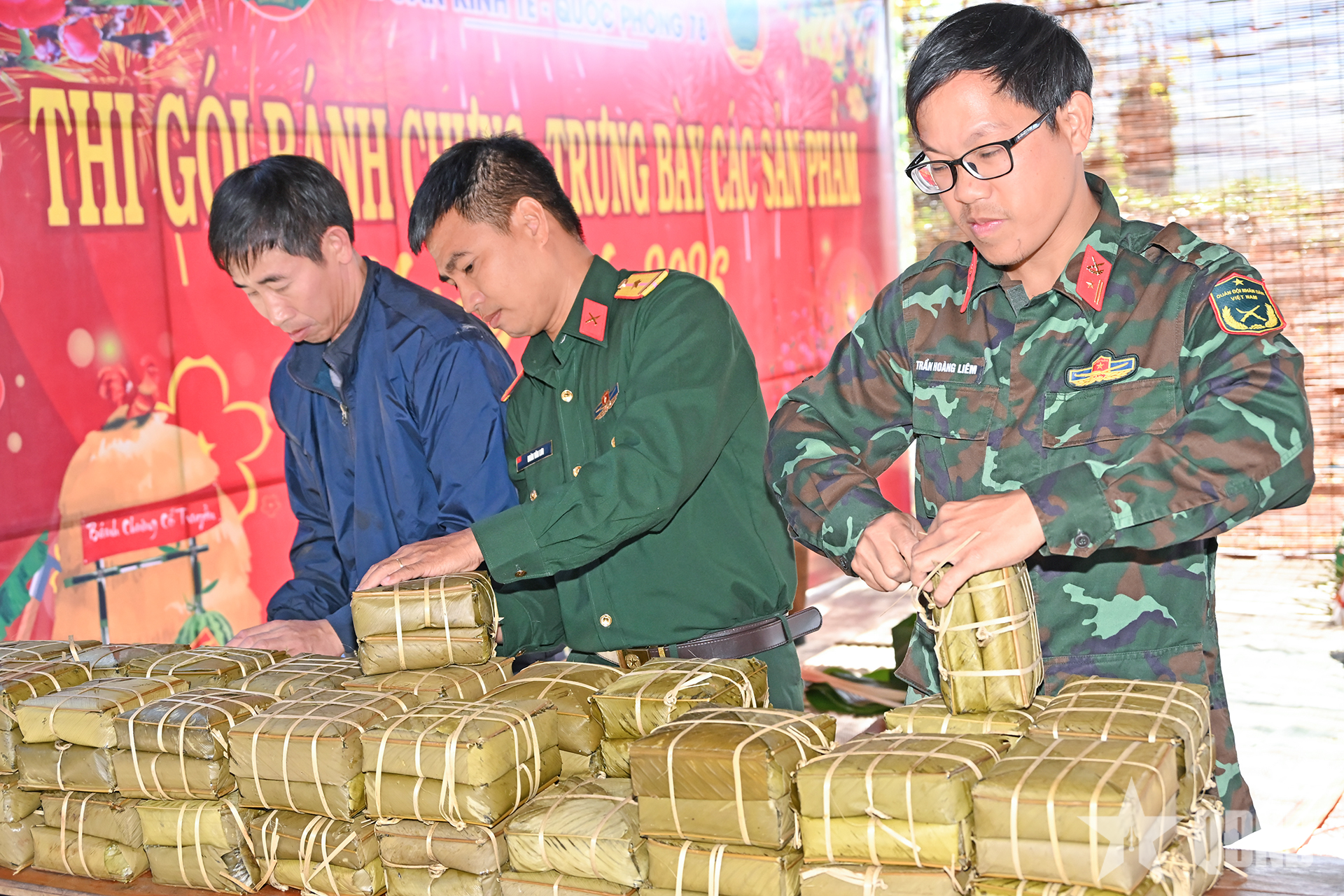 Ngay từ sáng sớm, chương trình đã diễn ra sôi nổi, hấp dẫn với Hội thi gói bánh chưng giữa 7 đội thi là cán bộ, công nhân viên chức quốc phòng, người lao động Đoàn Kinh tế - Quốc phòng 78 và đồng bào các dân tộc thiểu số trên địa bàn.