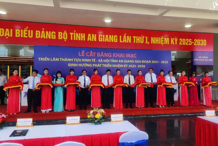 Cùng ngày, các đại biểu cũng đã cắt băng khai mạc triển lãm thành tựu kinh tế - xã hội tỉnh An Giang nhằm chào mừng đại hội.