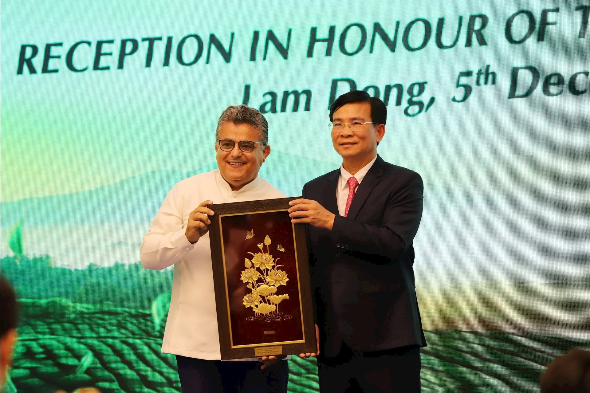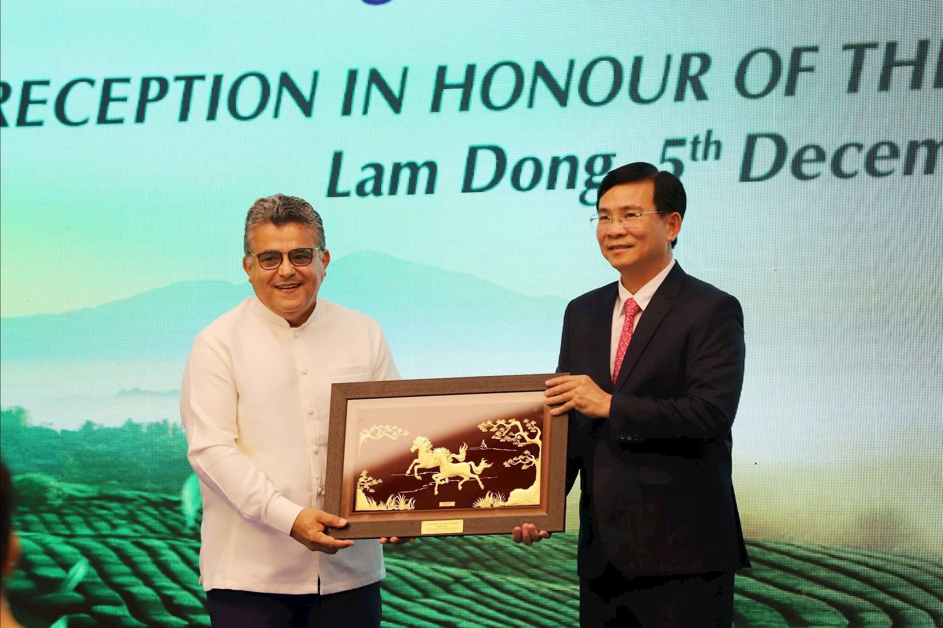 Chủ tịch UBND tỉnh Lâm Đồng Hồ Văn Mười tặng quà lưu niệm đến đại diện đoàn ngoại giao