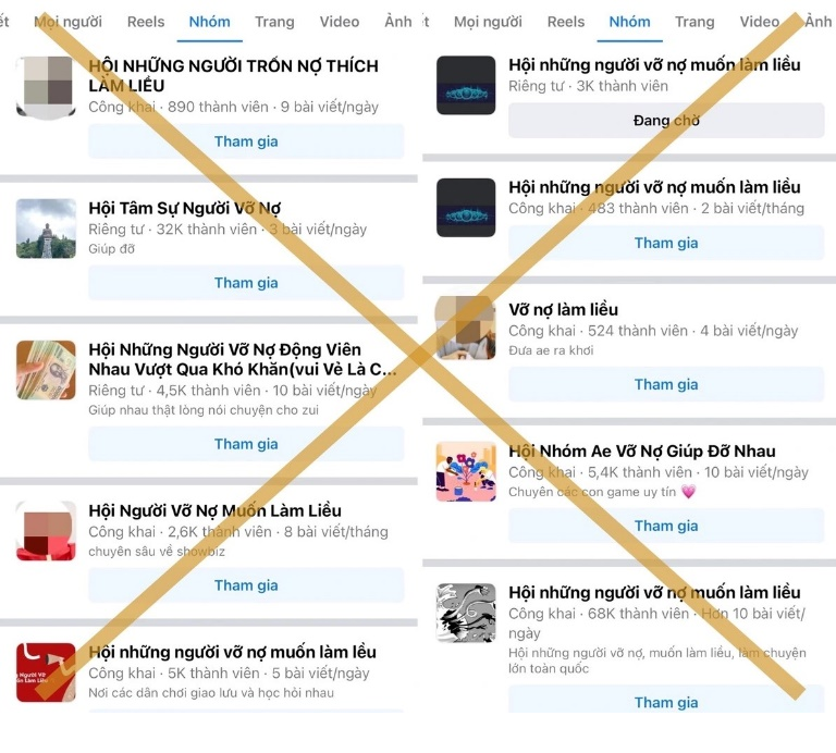 Các hội nhóm này thường hoạt động dưới dạng kín, thu hút số lượng lớn thành viên tham gia, chia sẻ các nội dung xoay quanh việc vay tiền qua các ứng dụng tín dụng đen, cách thức “né nợ”, “xù nợ”, thậm chí trao đổi kinh nghiệm thực hiện các hành vi vi phạm pháp luật nhằm có tiền tiêu xài.