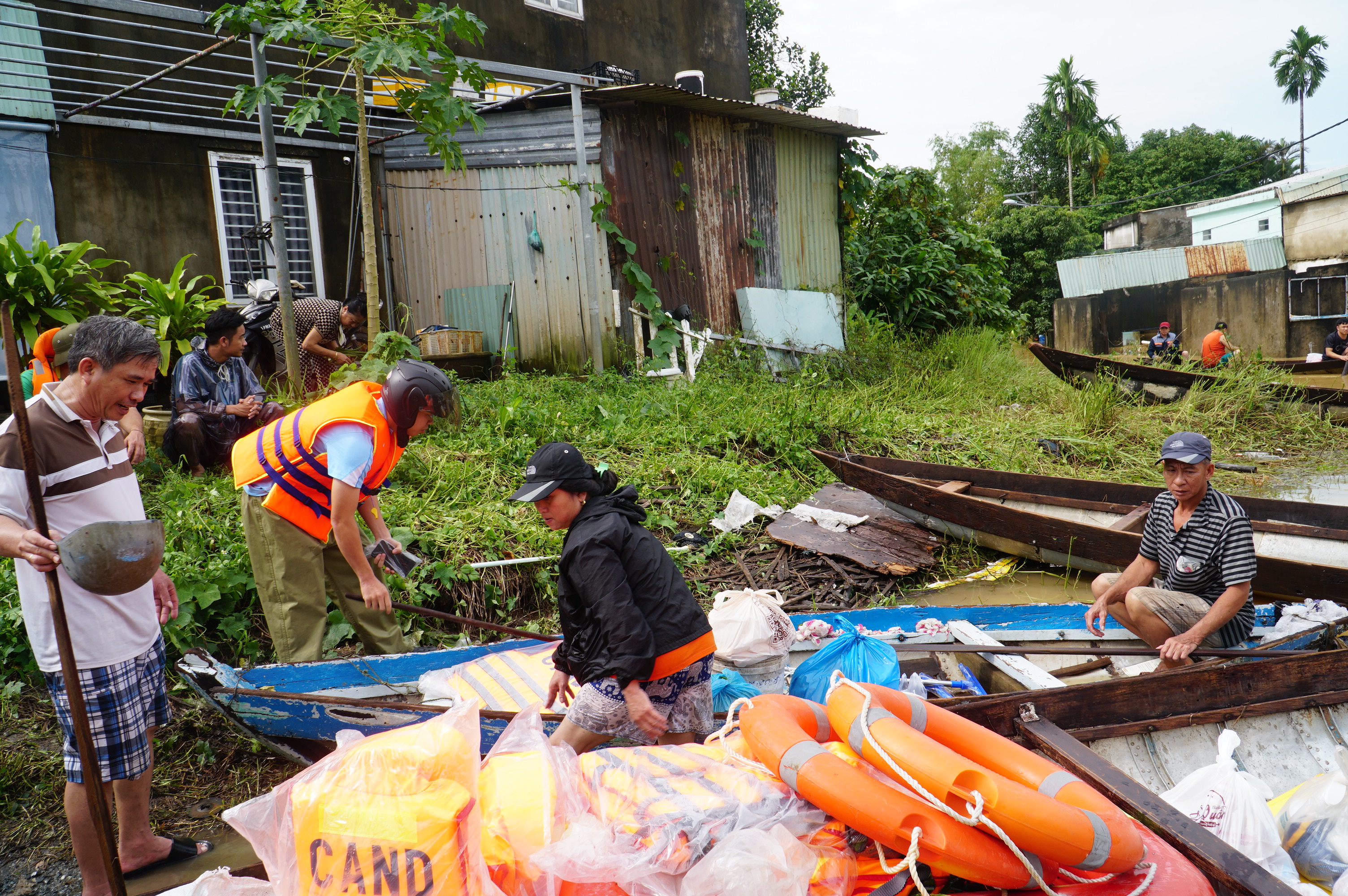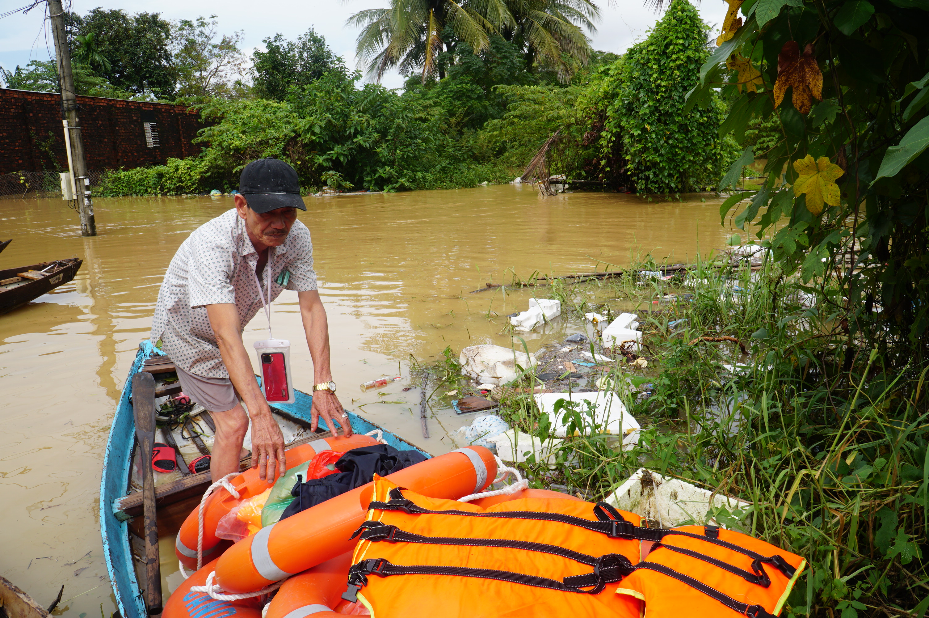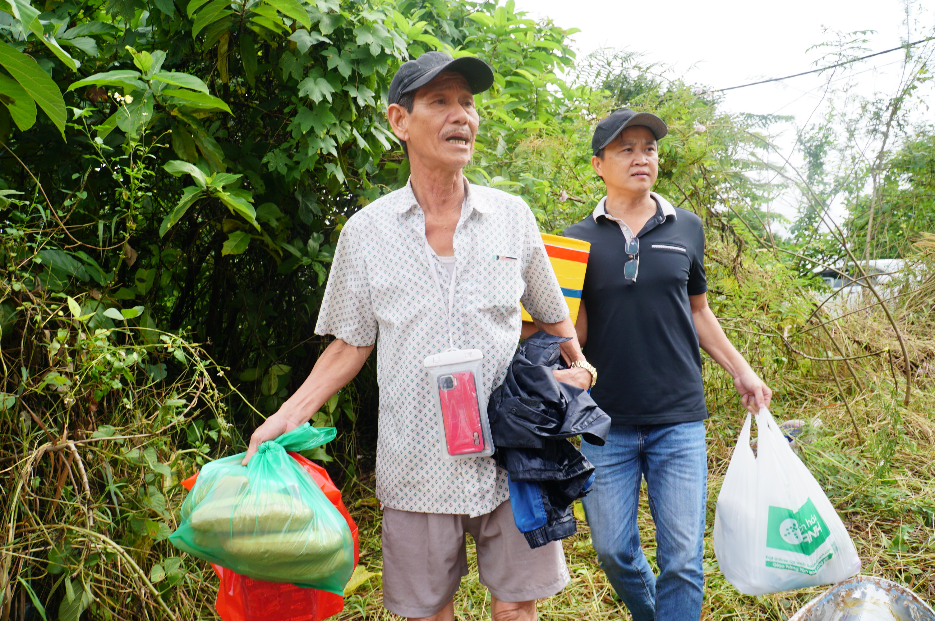 Một số người khác mang áo phao và vật dụng cần thiết để bám trụ. Ảnh: XUÂN QUỲNH