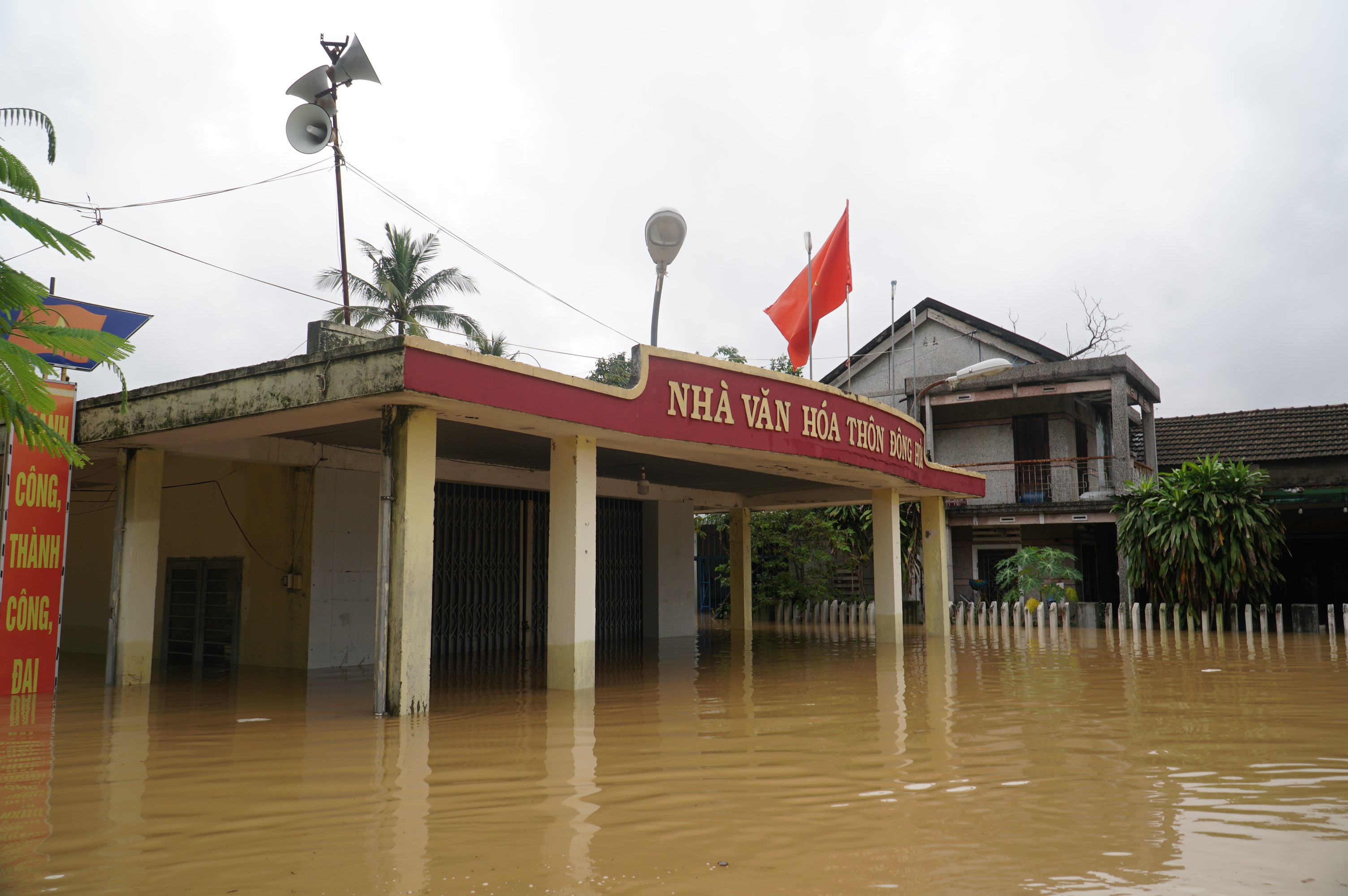 Nước dâng gây ngập gần hết nhà văn hóa thôn Đông Hòa. Ảnh: XUÂN QUỲNH