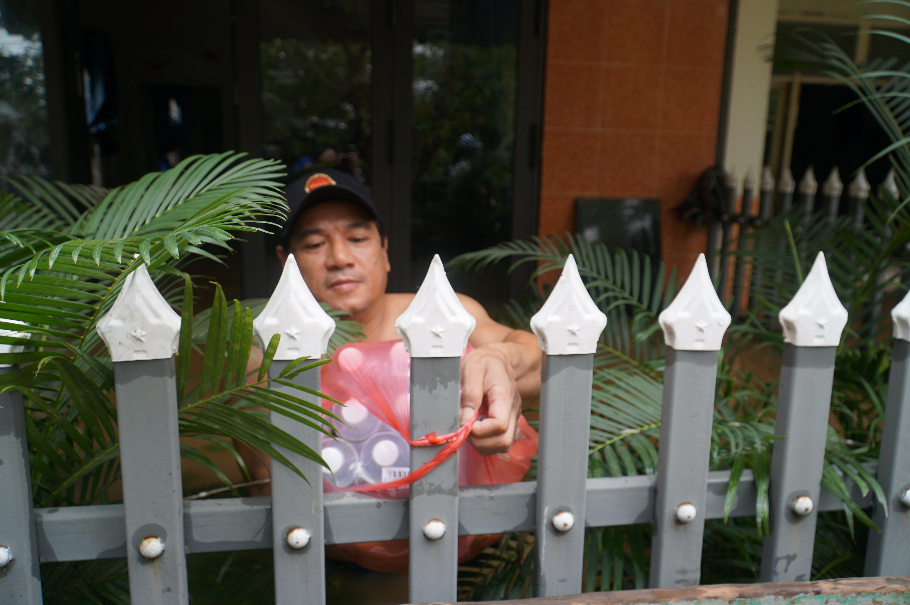 Người dân nhận nước uống hỗ trợ. Ảnh: XUÂN QUỲNH