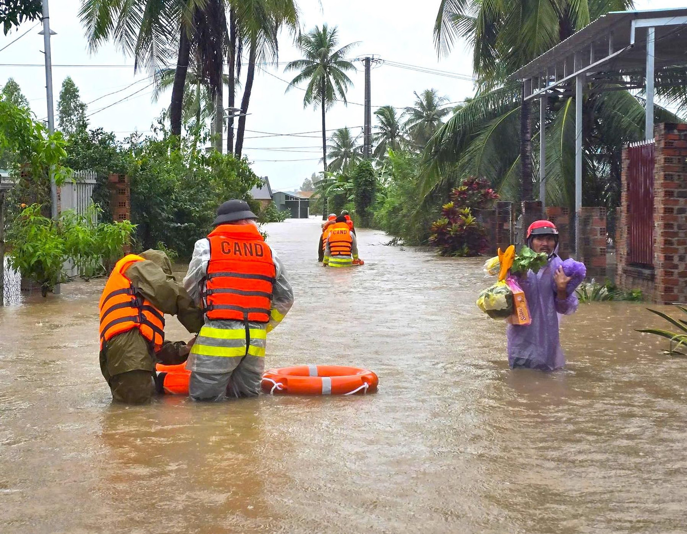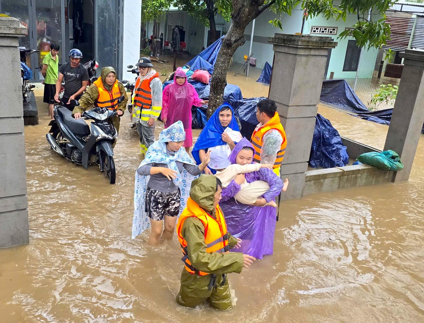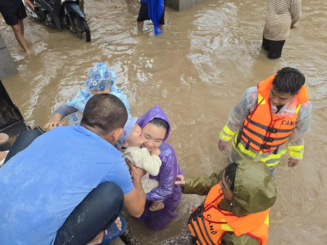 Trẻ em, người già là những đối tượng được ưu tiên hàng đầu đưa tới các điểm cao an toàn.
