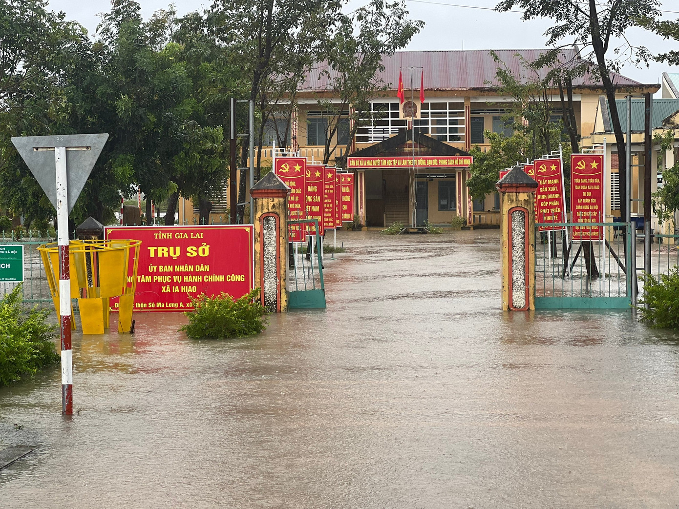 Trụ sở của xã Ia Hiao bị ngập sâu cả mét.