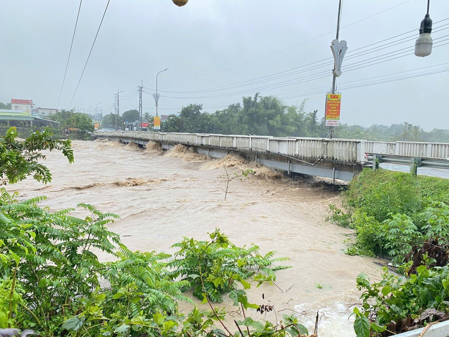 Lực lượng chức năng được huy động túc trực, phân luồng, chốt chặn, kiên quyết không cho người và phương tiện đi vào vùng nước chảy xiết ở Quốc lộ 25.