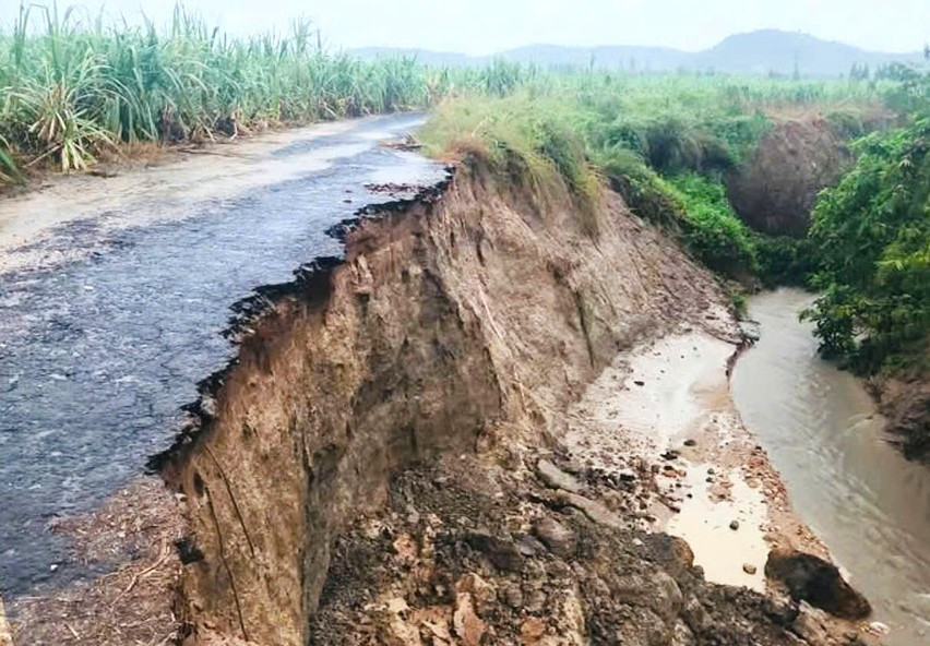 Tuyến đường từ xã Pờ Tó đi thủy điện Đăk Pihao bị sạt lở nghiêm trọng.