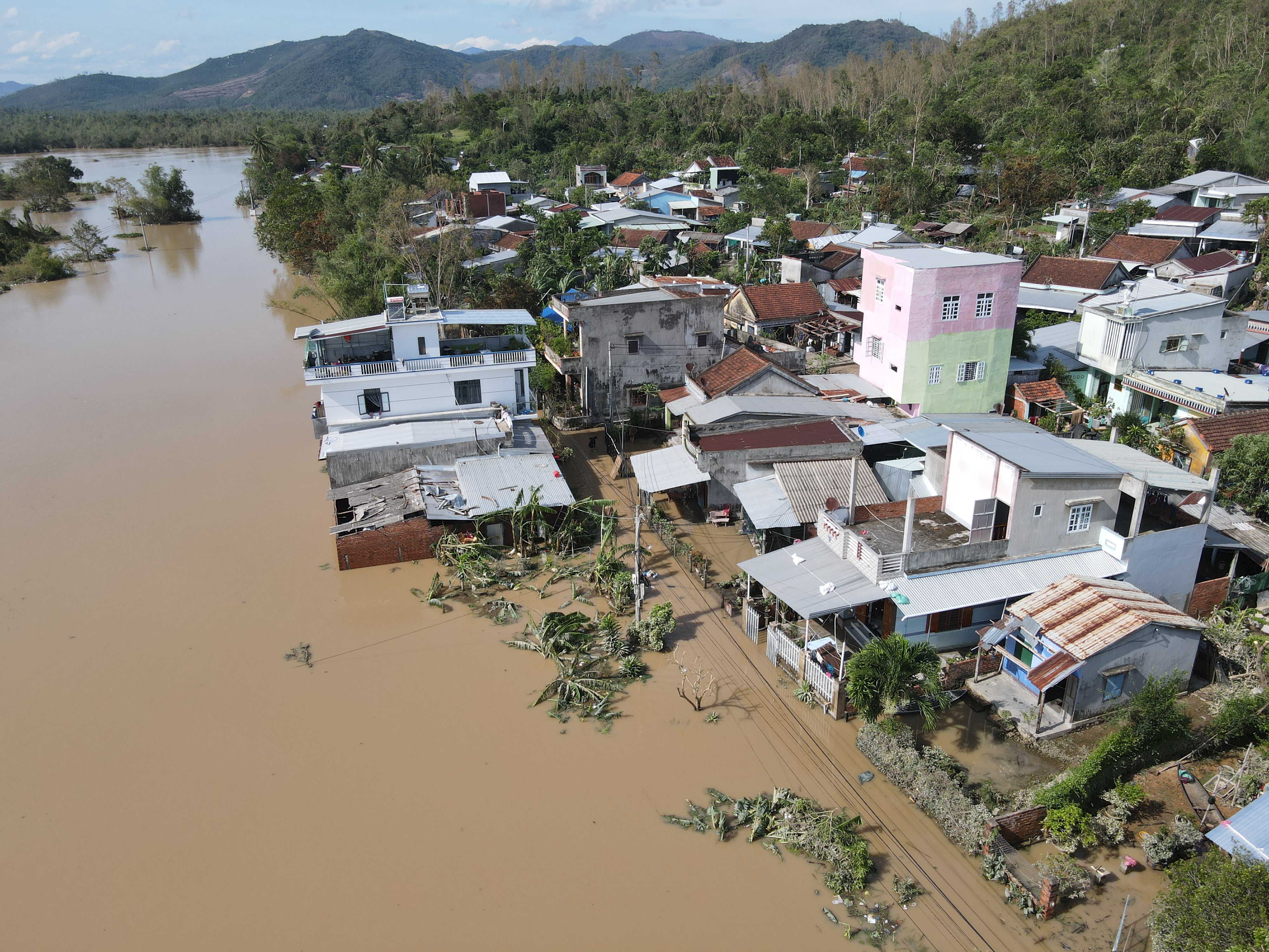 Tương tự, tại các xã Đồng Xuân, Xuân Phước, nhiều nhà dân vẫn còn ngập trong nước. Các xã này nằm ở vùng hạ du của Thủy điện La Hiêng 2 (xã Phú Mỡ, tỉnh Đắk Lắk).