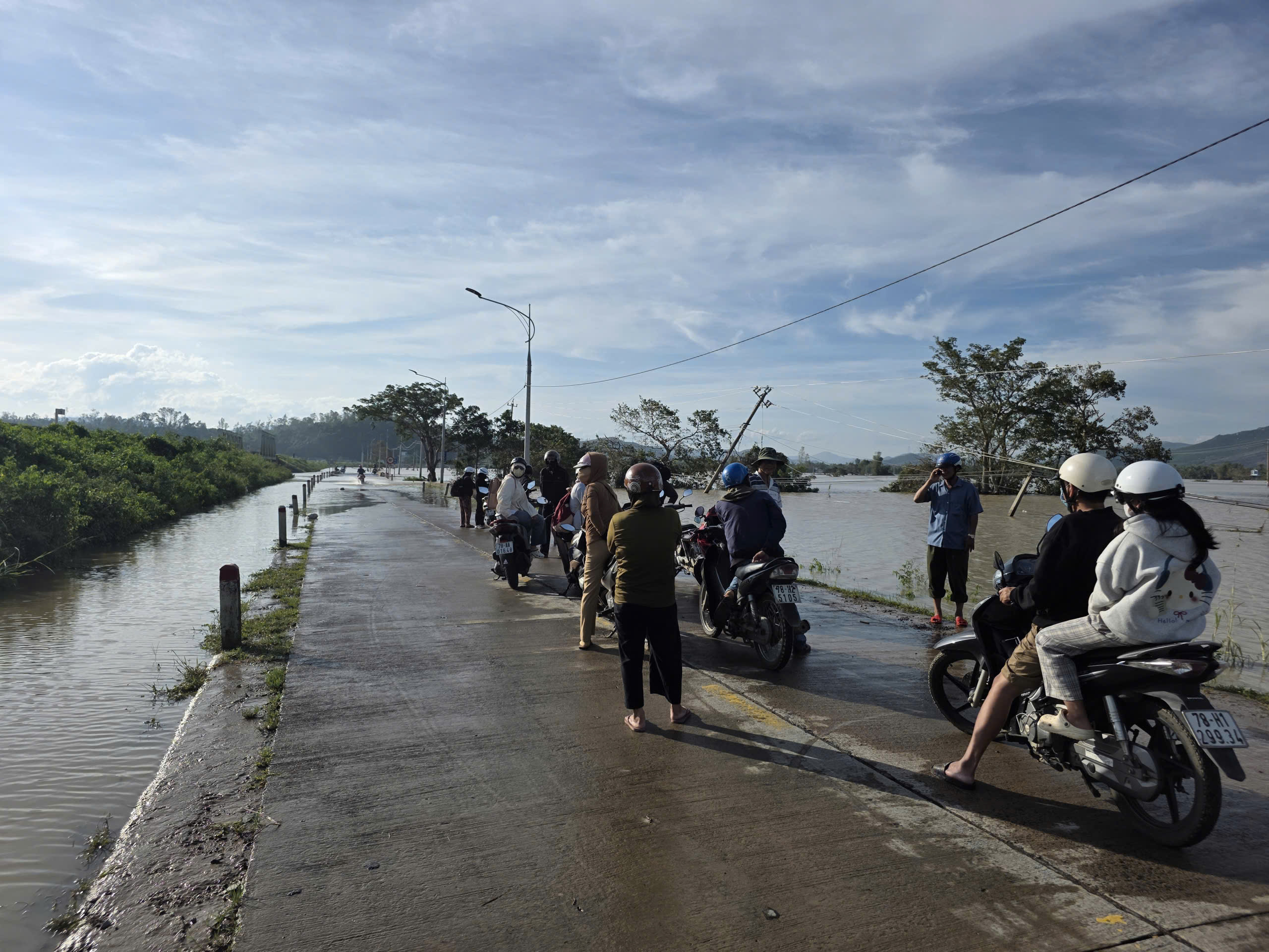 Đến chiều 7-11, tuyến đường và xã Tuy An Bắc bị ngập nặng