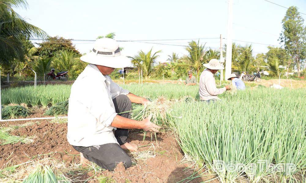 Theo ghi nhận, những ngày gần đây, giá nhiều loại rau màu trên địa bàn tỉnh đã hạ nhiệt. Tuy nhiên, giá một số loại rau màu như: Ớt, cà chua, hành lá… vẫn ở mức cao. Gia đình ông Nguyễn Văn Quân (ấp Kinh Trên, xã Tân Điền) có trồng hơn 3 công hành lá. Hành lá được các thương lái thu mua với giá 30.000 đồng/kg.