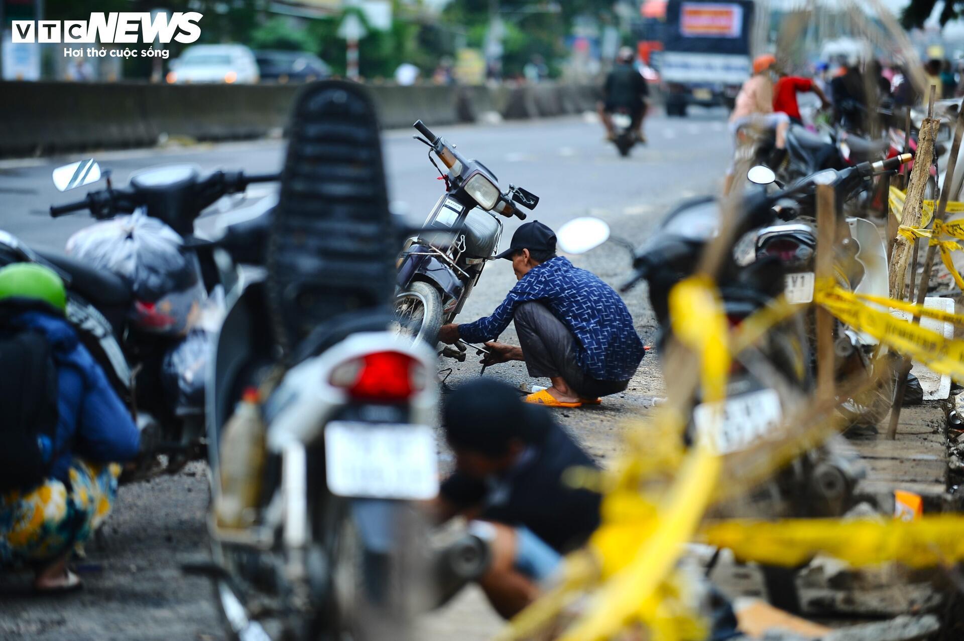 Bà con giúp đỡ nhau sửa chữa xe máy bị ngâm nước để có phương tiện đi lại, kiếm tiền mưu sinh.