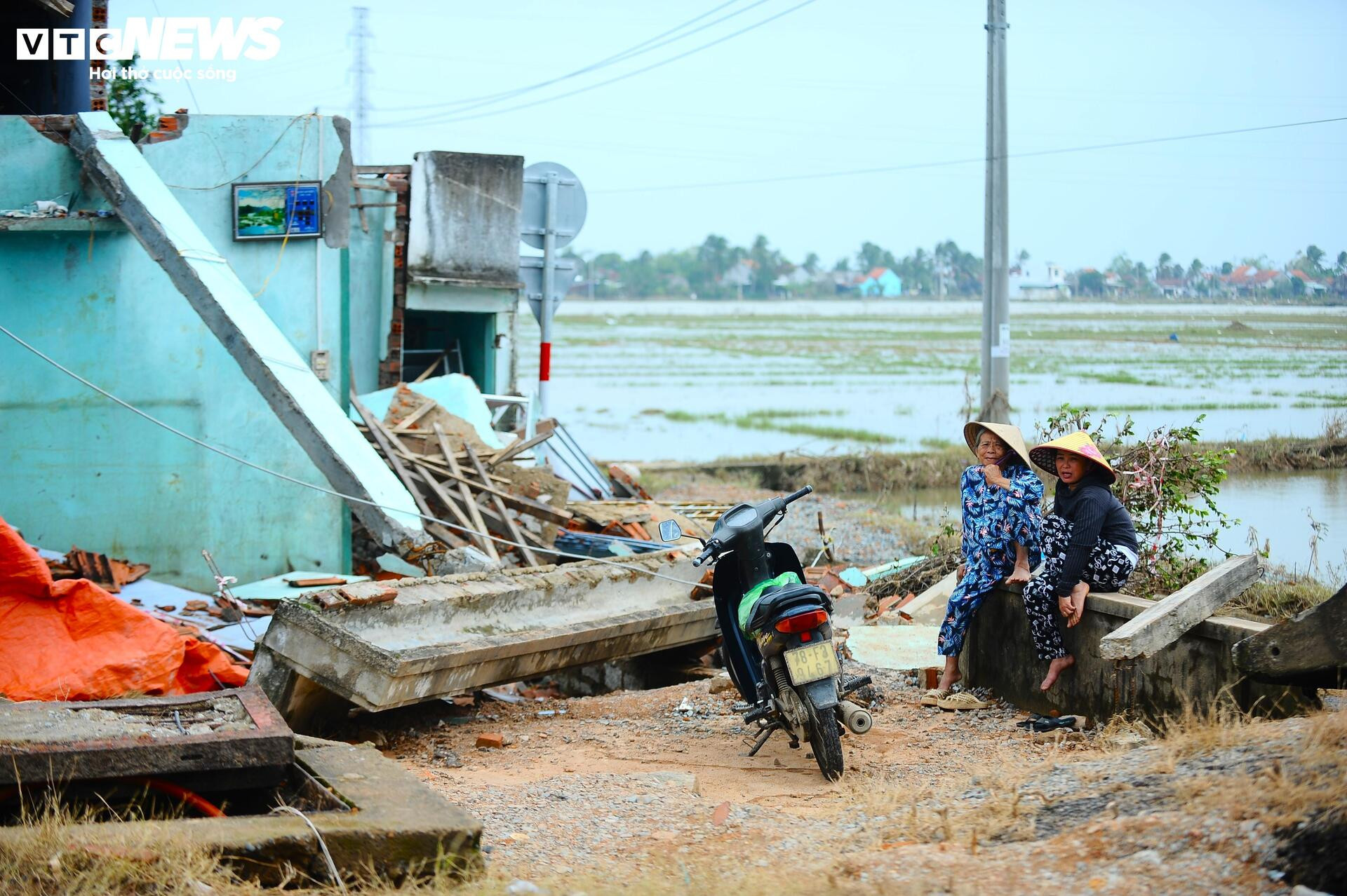 Nước lũ rút cũng là lúc bà con chứng kiến cảnh tượng đổ nát... Những ngôi nhà trước kia nay chỉ là đống gạch vụn. Căn nhà của mẹ con bà Lê Thị Trưng (80 tuổi) bị sập hoàn toàn, khiến họ chỉ còn biết thẫn thờ vì quá sốc.