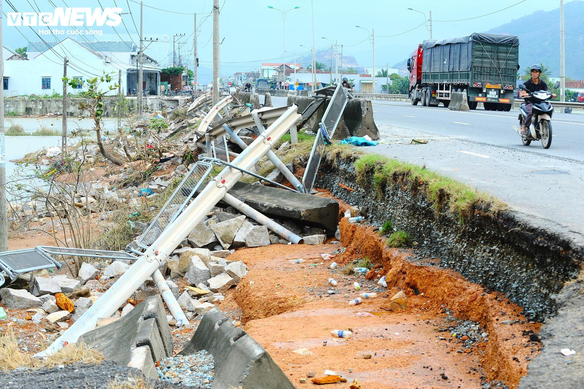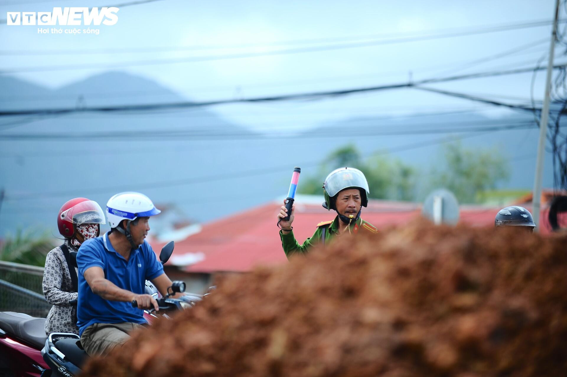 Những chiến sĩ công an khác căng sức phân luồng giao thông, giữ gìn an toàn cho phương tiện đi qua những nơi đổ nát.