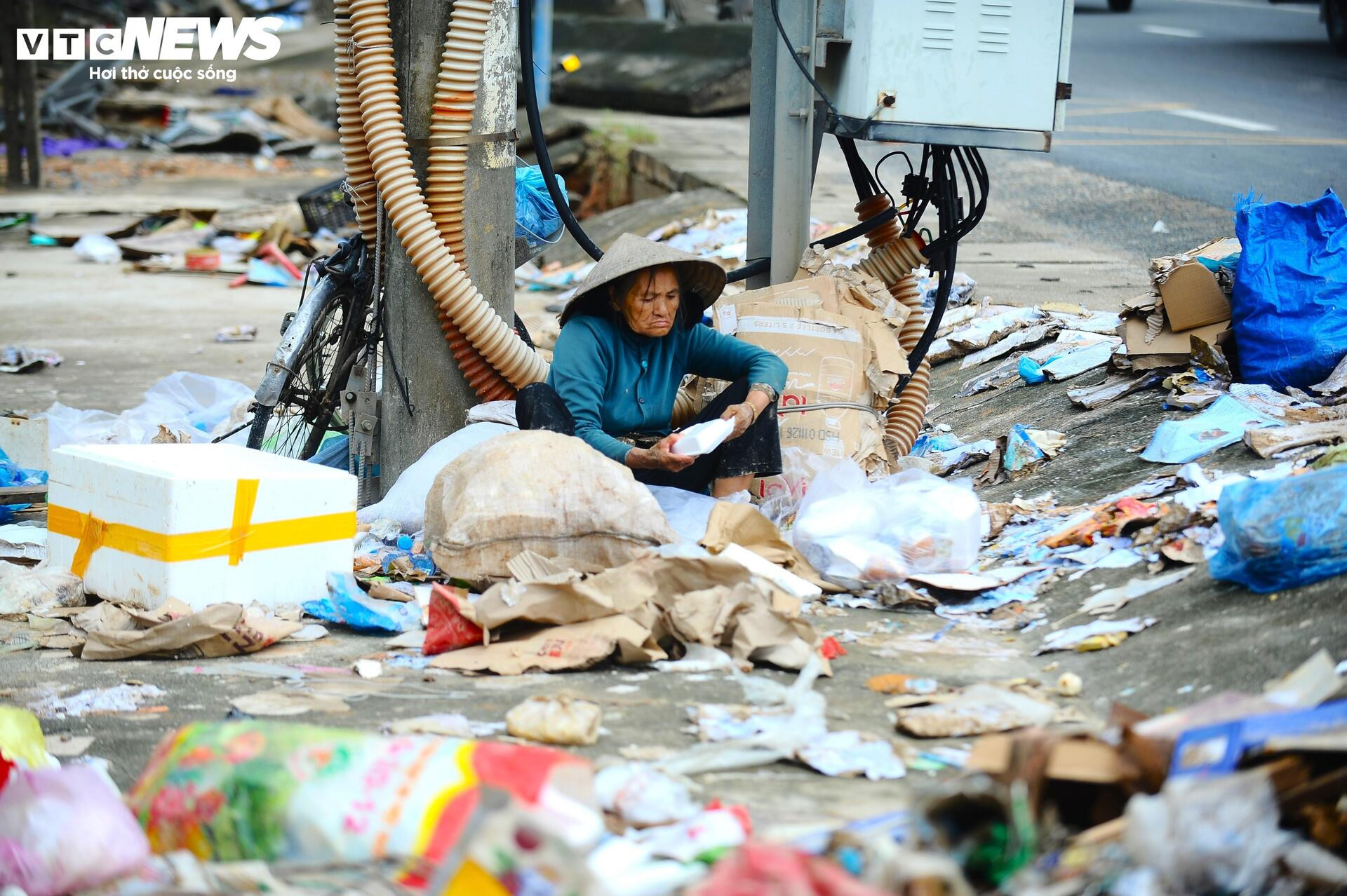 Giữa đống rác thải, bà Nguyễn Thị Lõ (83 tuổi) cố gắng tìm nhặt những vật dụng còn tái sử dụng được để bán ve chai.