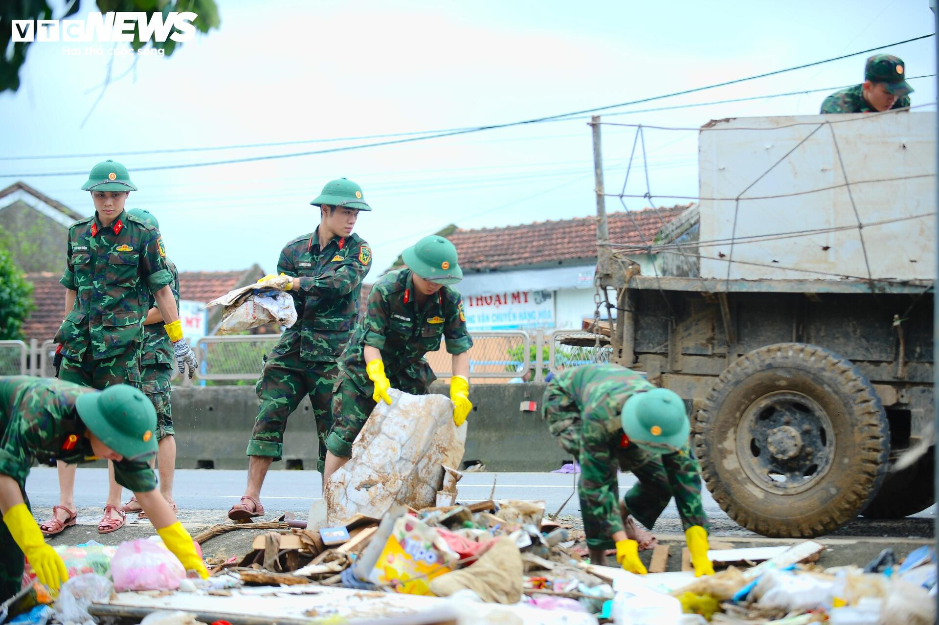 Các chiến sĩ Lữ đoàn 575, Quân khu V tận tình giúp người dân vệ sinh nhà cửa, trường học.