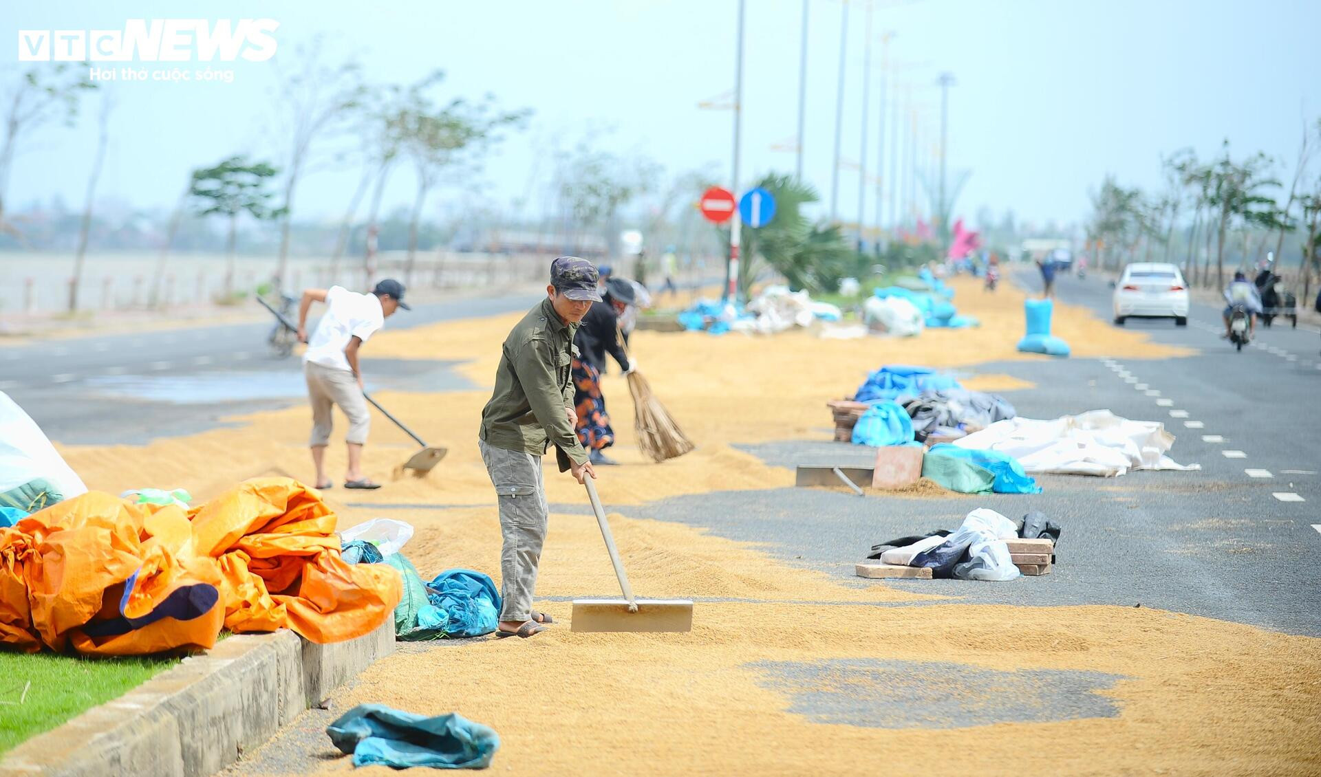 Khi nắng vừa lên, người dân hối hả đem lúa bị ngâm nước ra phơi với hi vọng sẽ bán được cho người chăn nuôi để có kinh phí trang trải cuộc sống.