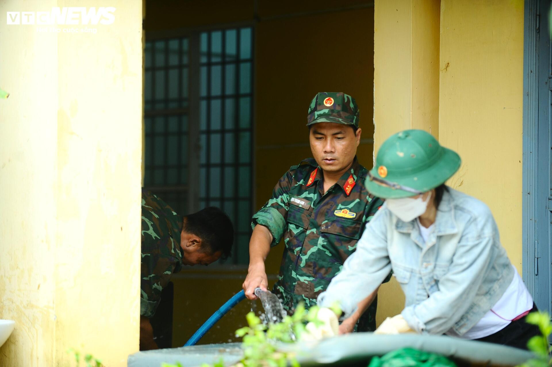 Tại các điểm bị ngập sâu, khối lượng công việc sau khi nước rút là rất lớn vì hầu hết vật dụng đều bám bùn đất và hư hỏng.