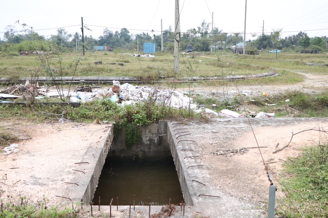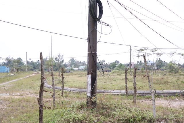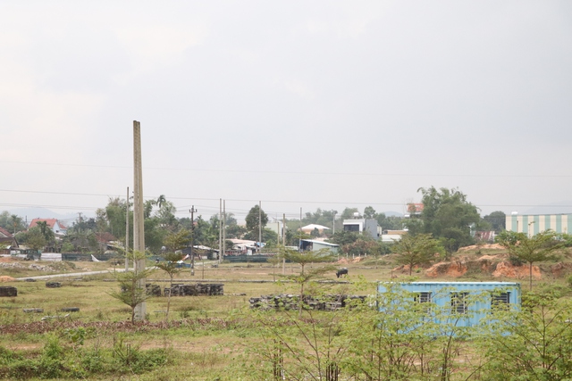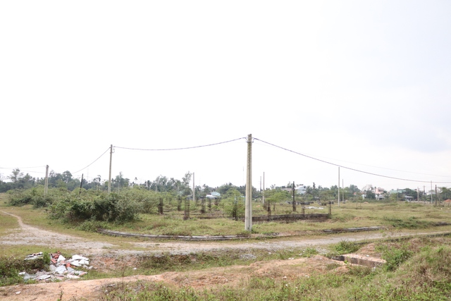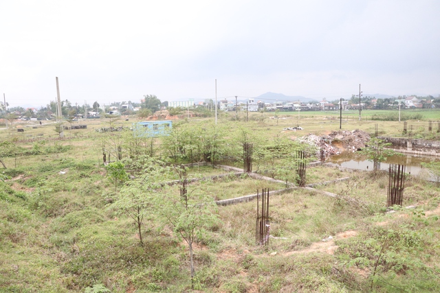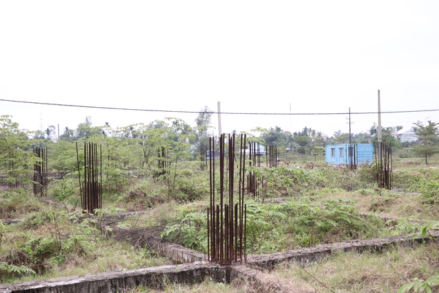 Một số vị trí đã thi công móng, tường gạch thấp, thép chờ; cột điện, đường dây điện được lắp đặt rải rác trong khu vực. Tuy nhiên, hầu hết các hạng mục đều bỏ dở, cỏ dại mọc um tùm, vật liệu xây dựng ngổn ngang.