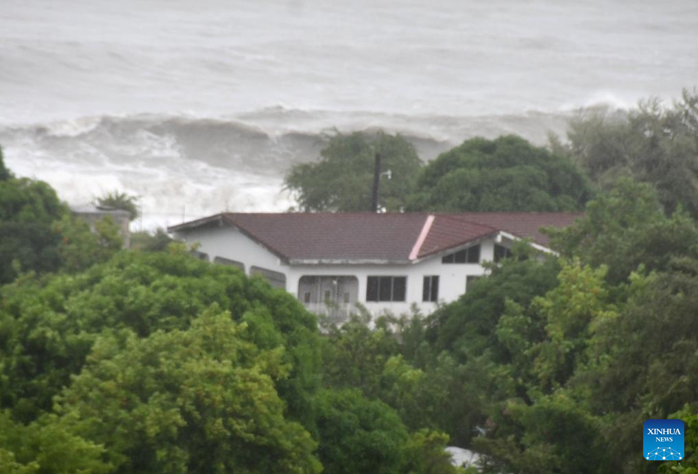 Bão Melissa mạnh cấp 5 đã đổ bộ vào bờ biển phía tây nam của Jamaica vào ngày 28/10. Vào lúc 14 giờ chiều cùng ngày, tâm bão nằm ở phía tây Jamaica và di chuyển về phía bắc - đông bắc với tốc độ gần 13km/h, Trung tâm Bão quốc gia Mỹ cho biết. Ảnh: Những con sóng lớn ở St. Thomas, Jamaica, ngày 28/10. Ảnh: Tân Hoa Xã.