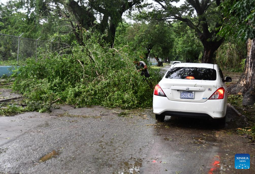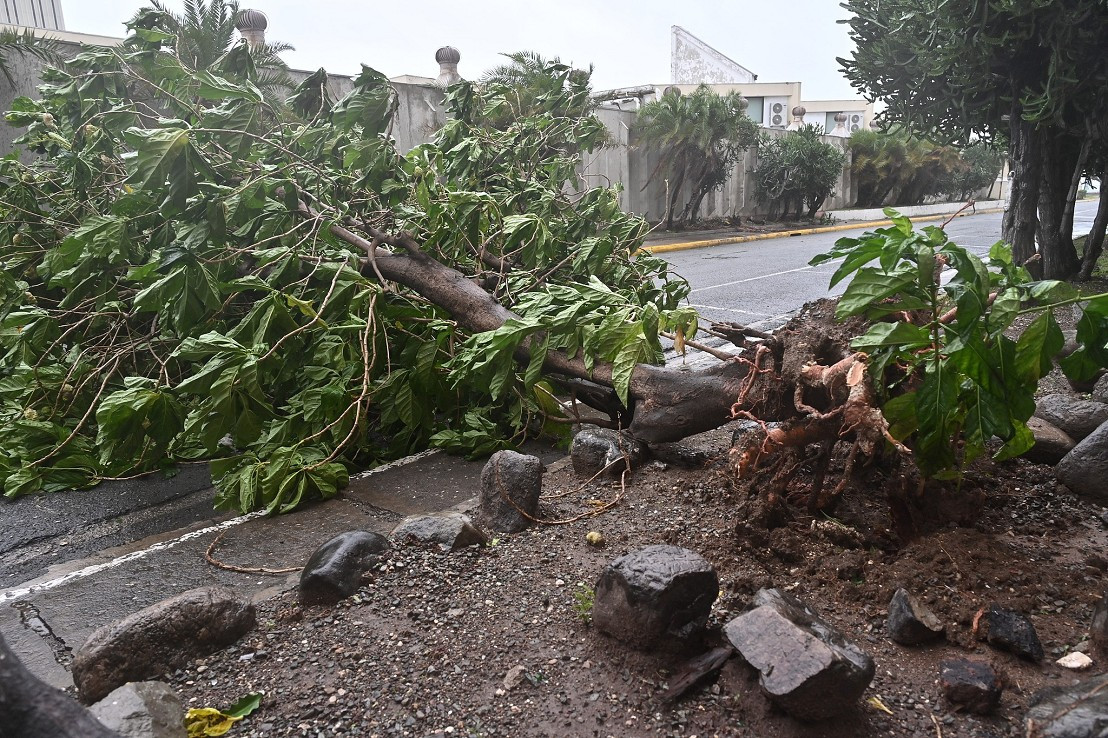 Bão Melissa khiến cây đổ trên đường ở Kingston, Jamaica. Ảnh: VCG.