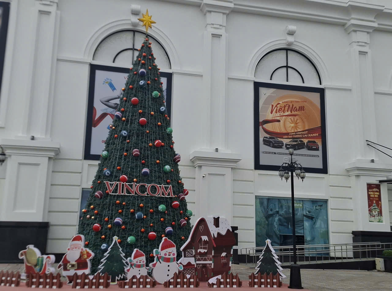 Cây thông trước trung tâm thương mại Vincom tại phường An Xuyên, tỉnh Cà Mau. Ảnh: TẤN THÁI