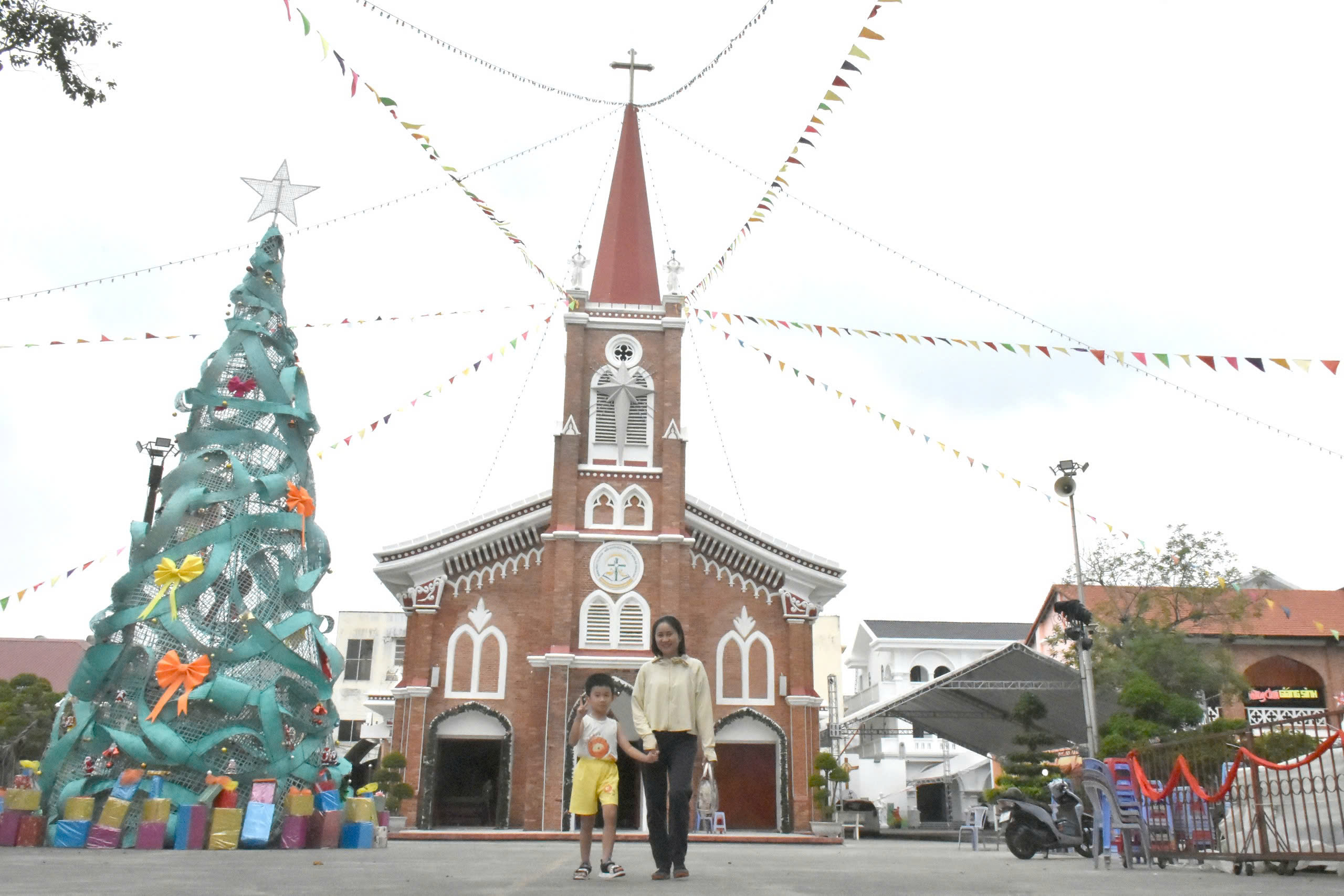 Người dân chụp hình đón Giáng sinh tại Nhà thờ Giáo xứ Rạch Giá (phường Rạch Giá, tỉnh An Giang). Ảnh: NAM KHÔI