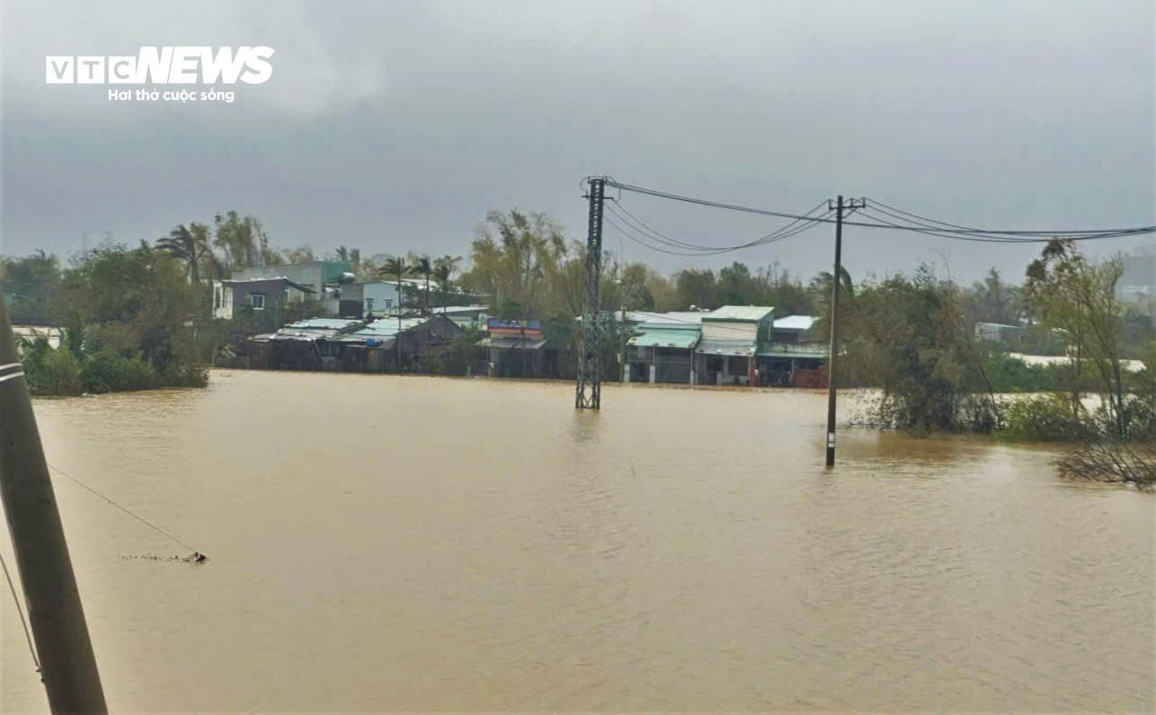 Nước lên nhanh khiến các ngôi nhà trên địa bàn xã Tuy Phước, phường Quy Nhơn Đông...bị ngập.