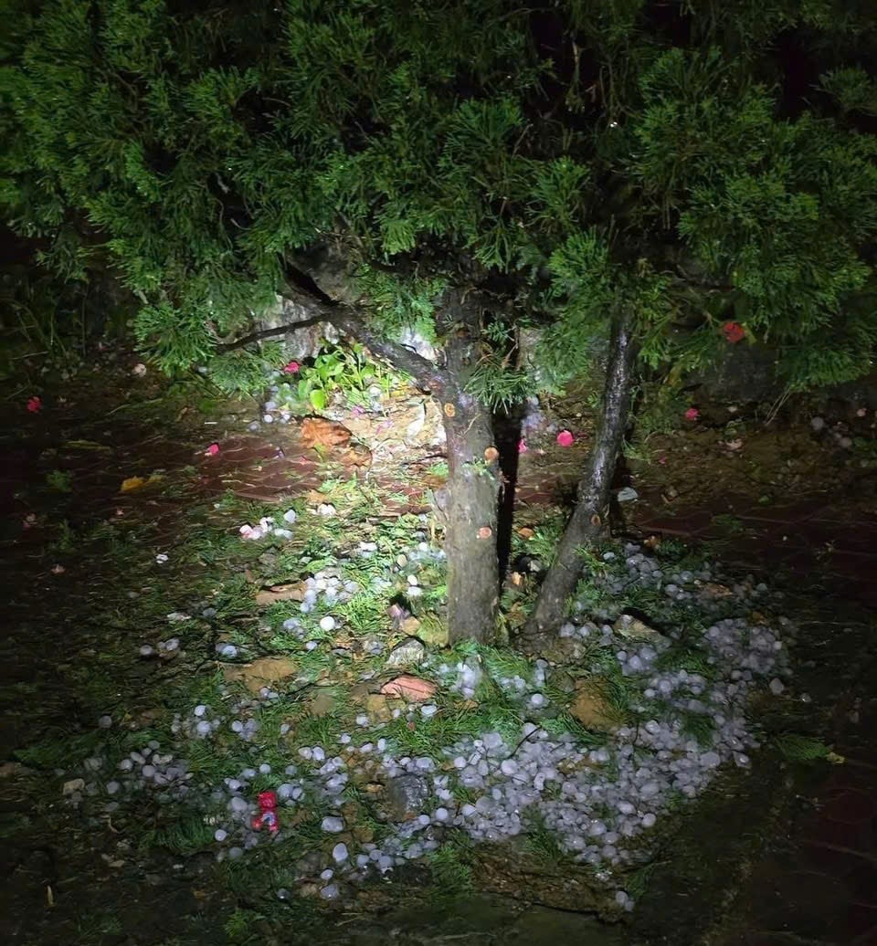 Mưa đá tại xã Bắc Hà (tỉnh Lào Cai) đêm 15, rạng sáng 16-4. Ảnh: ST