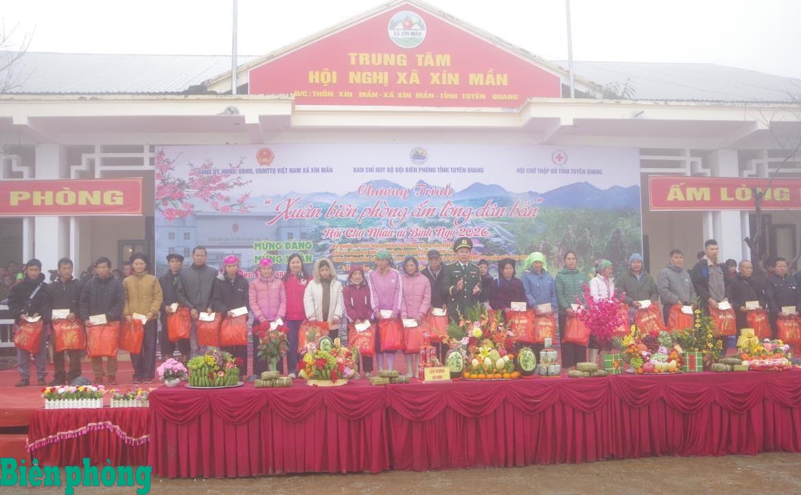 Thực hiện Chương trình “Xuân Biên phòng ấm lòng dân bản” năm 2026, các đơn vị trong Bộ đội Biên phòng tỉnh Tuyên Quang đã phối hợp với các đơn vị trao 9.675 phần quà, 867 chiếc bánh chưng xanh tặng hộ nghèo, gia đình chính, các cháu học sinh trong Chương trình “Nâng bước em tới trường - Con nuôi đồn biên phòng” và các cháu học sinh nghèo vượt khó; khám chữa bệnh, cấp thuốc miễn phí cho 1.322 lượt người; tặng 1.120kg gạo cho các hộ dân. Tổng trị giá quà tặng hơn 9,2 tỷ đồng.