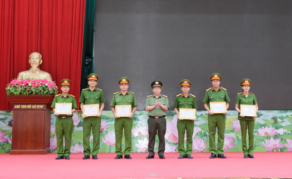 Đại tá Nguyễn Văn Thắng, Phó Giám đốc Công an TP Cần Thơ khen thưởng các tập thể, cá nhân tiêu biểu.