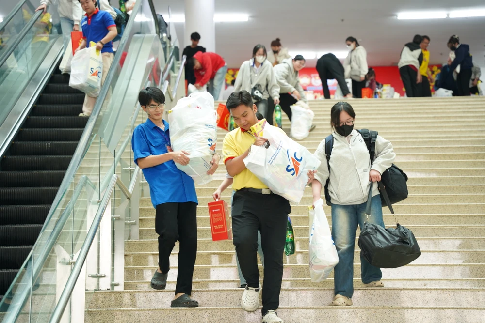 Tại đây, ban tổ chức trao 700 phần quà cho sinh viên đang học tập tại các trường đại học, học viện, cao đẳng trên địa bàn TP.HCM. Mỗi phần quà trị giá 1,3 triệu đồng, gồm quà Tết trị giá 800.000 đồng và lì xì tiền mặt 500.000 đồng.