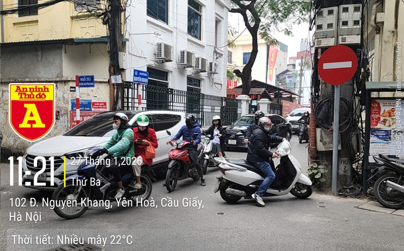 Trưa 27-1-2026, theo ghi nhận của phóng viên, tuyến đường Nguyễn Khang nhỏ (đoạn từ số nhà 235 Nguyễn Khang đến Cầu Cót, phường Yên Hòa, Hà Nội) vẫn xuất hiện tình trạng nhiều phương tiện đi ngược chiều. Phần lớn các trường hợp vi phạm là xe gắn máy, trong đó không ít người điều khiển tỏ ra “hồn nhiên”, thậm chí cố tình lưu thông bất chấp biển báo cấm.