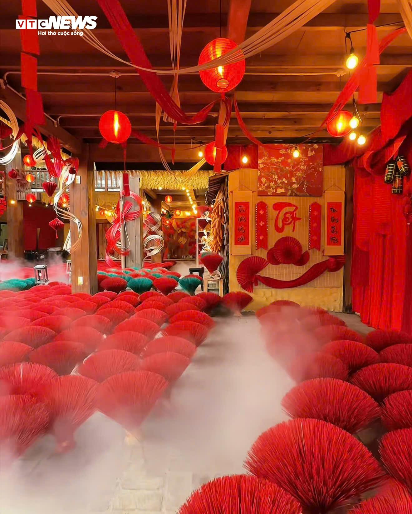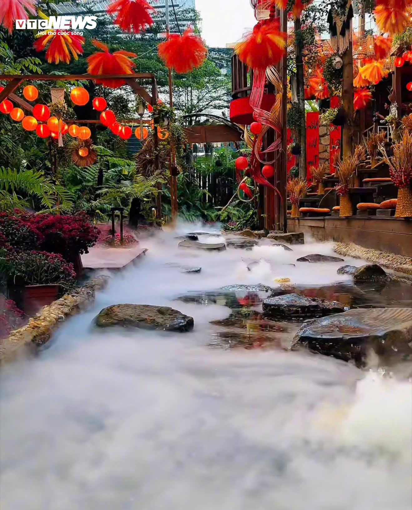 Quán cà phê rực rỡ tiểu cảnh Tết.