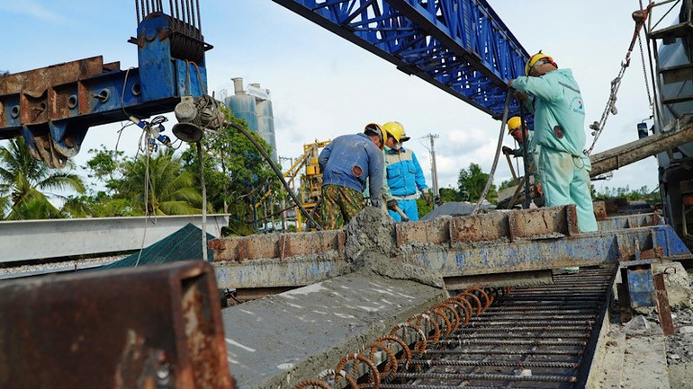 Thi công cầu trên dự án thành phần 2 cao tốc Châu Đốc-Cần Thơ-Sóc Trăng trên địa bàn Cần Thơ.