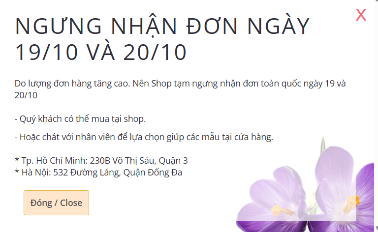 Hoayeuthuong thông báo ngưng nhận đơn ngày 19-10 và 20-10