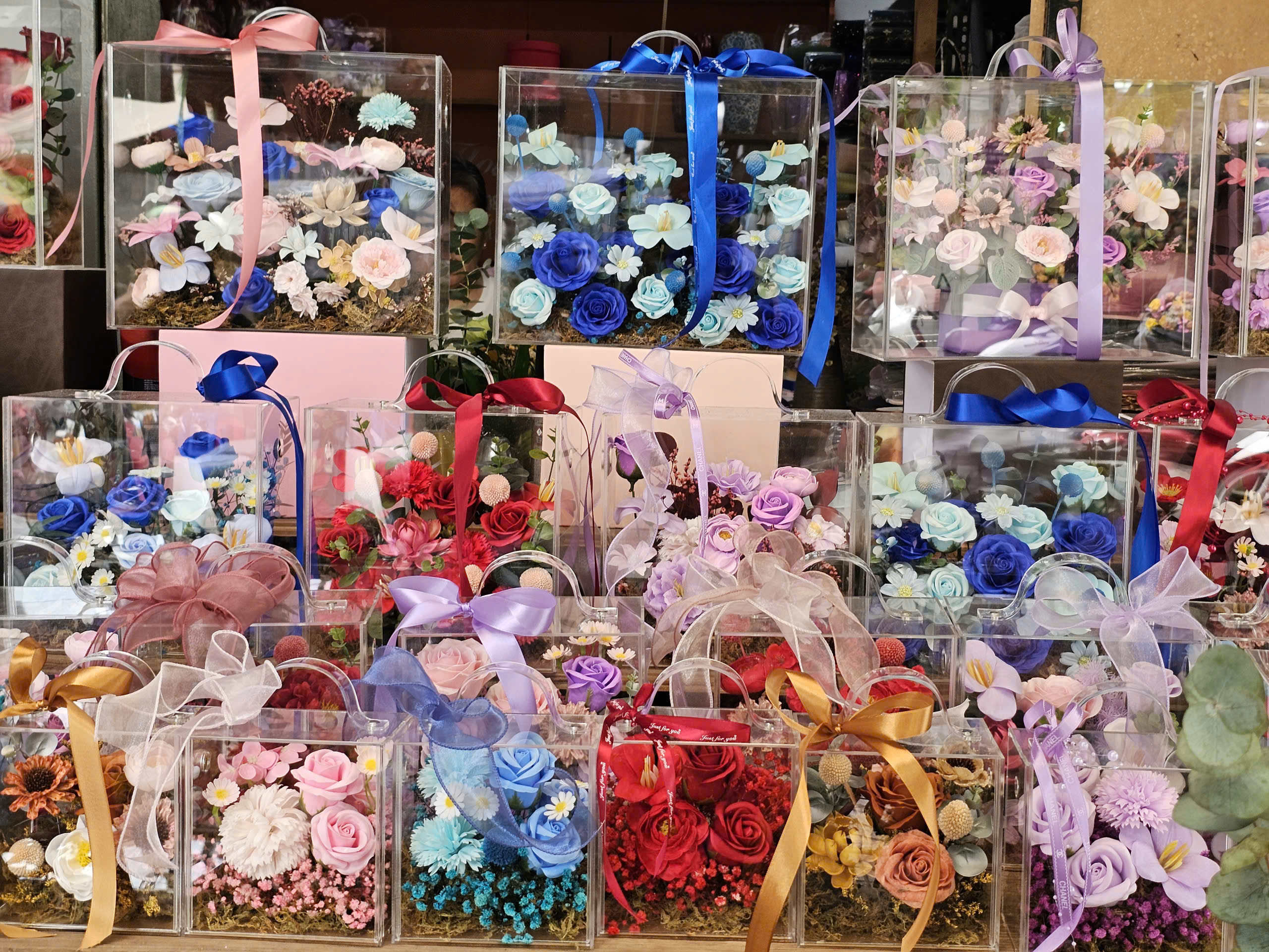 Các giỏ hoa được đóng hộp có giá từ 300.000 - 400.000 đồng