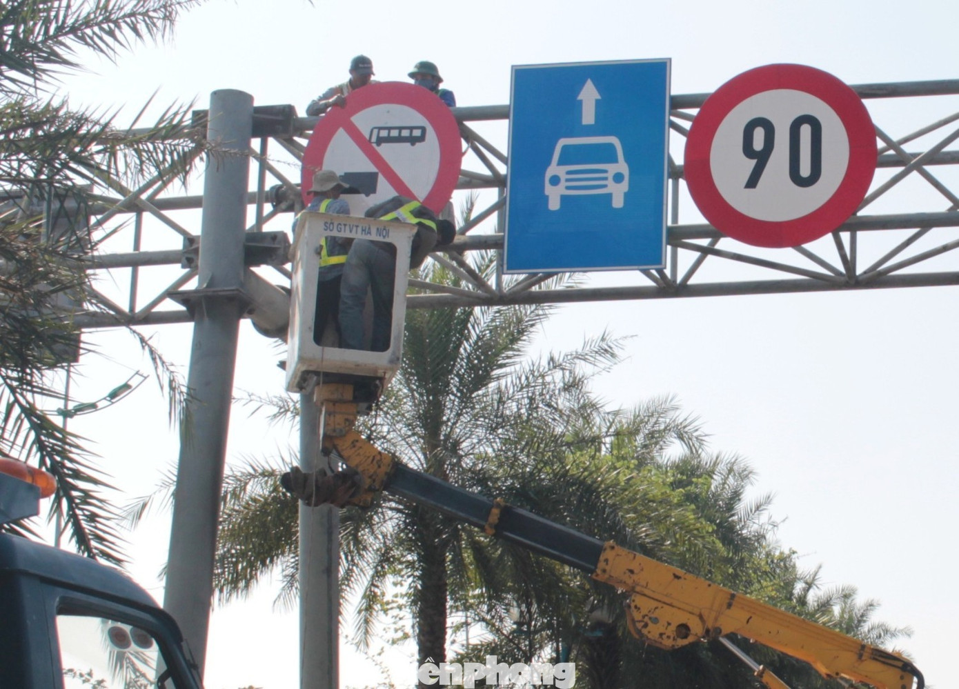 Từ sáng nay trục Nhật Tân - Nội Bài có thêm biển báo cấm xe khách, xe tải đi ở làn 1 (làn sát dải phân cách giữa) ở mỗi chiều đường; tốc độ chạy xe ở làn 1 là 80km/h nay cũng được thay bằng biển báo xe được chạy tối đa 90km/h...