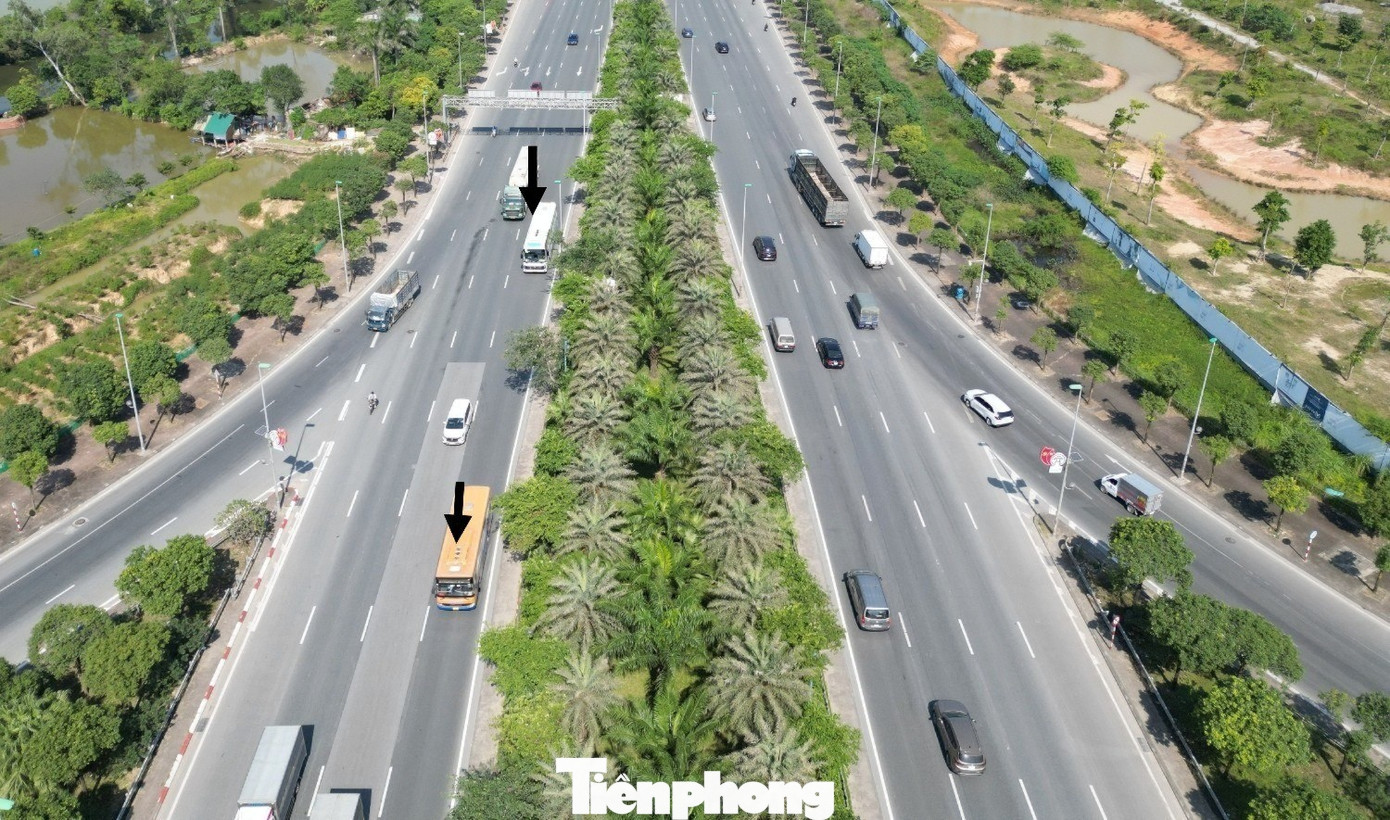 Do ngày đầu thực hiện nên một số lái xe tải, xe khách cho biết còn bị lúng túng, đặc biệt là đoạn từ các nút giao đi vào tuyến đường, dẫn đến xe vẫn đi vào làn 1 (xe có mũi tên)