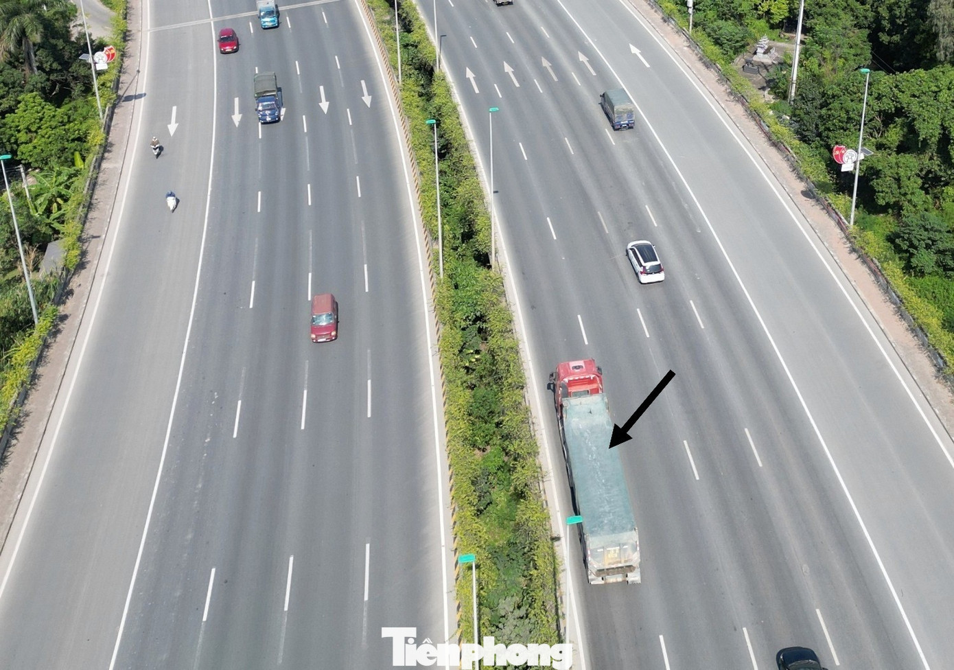 Theo phương án phân luồng mới của Sở Xây dựng, từ hôm nay (25/11), trong 4 làn xe mỗi chiều trục Nhật Tân - Nội Bài, làn số 1 thực hiện cấm xe tải, xe chở khách đi vào.