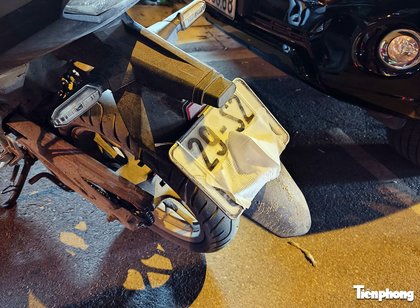 Hình ảnh biển số xe bị dán. Ảnh: Thanh Hà