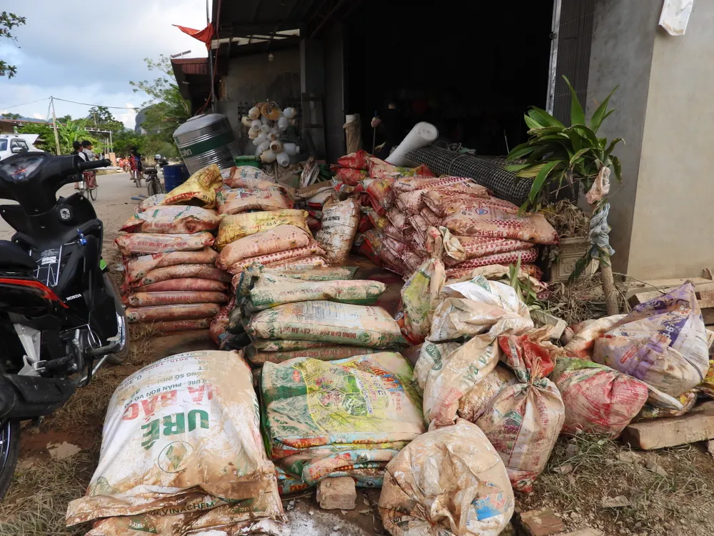 Vật tư nông nghiệp của anh Phạm Văn Quân, xã Vân Nham bị hư hỏng không thể sử dụng do ngập nước. Ảnh: Bắc Ninh