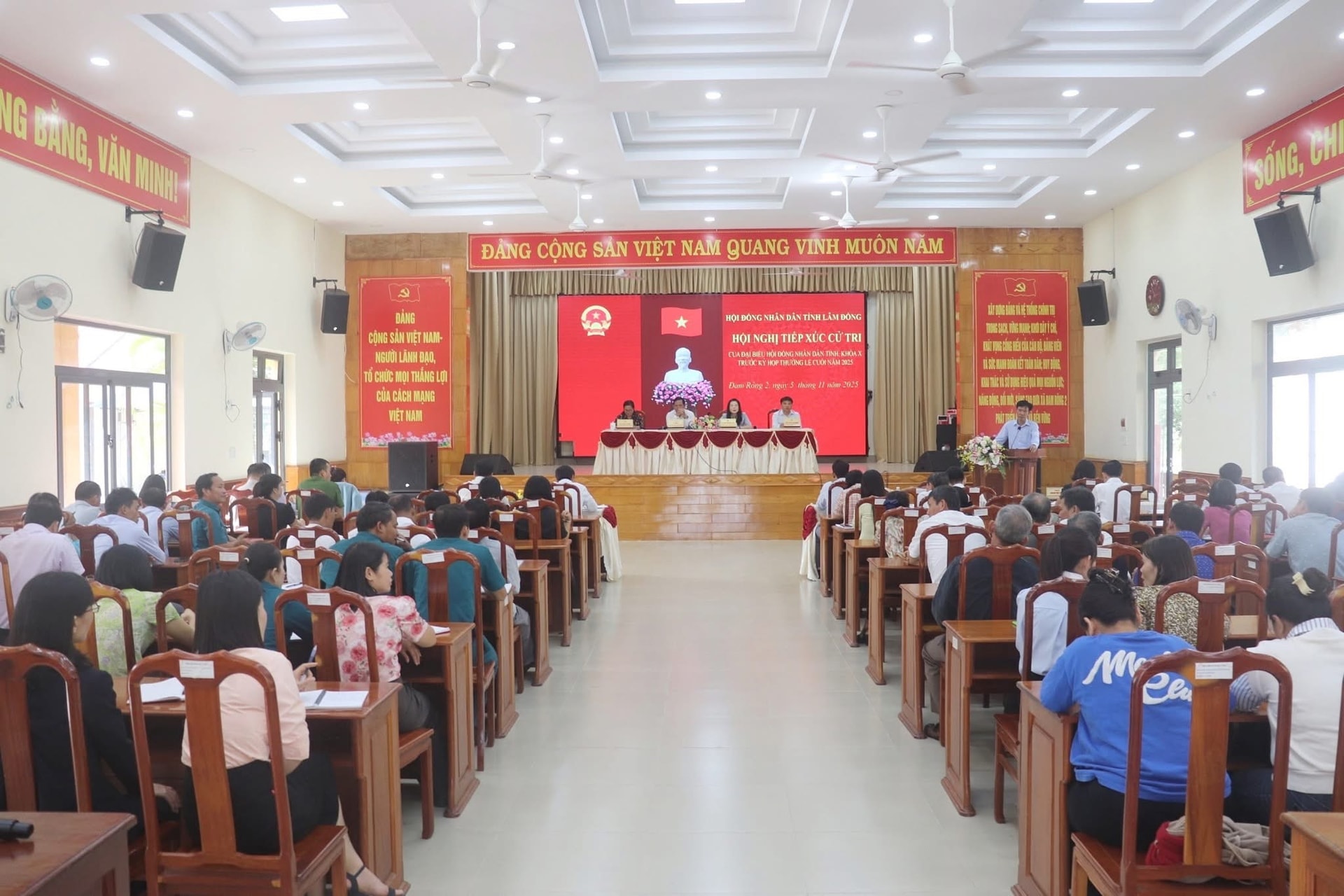 Tại buổi tiếp xúc, cử tri được nghe báo cáo tình hình phát triển kinh tế - xã hội 10 tháng đầu năm 2025 của tỉnh Lâm Đồng, dự kiến chương trình kỳ họp thứ 5 và thứ 6 của HĐND tỉnh, cùng kết quả giải quyết các ý kiến, kiến nghị của cử tri sau kỳ họp thứ 2.