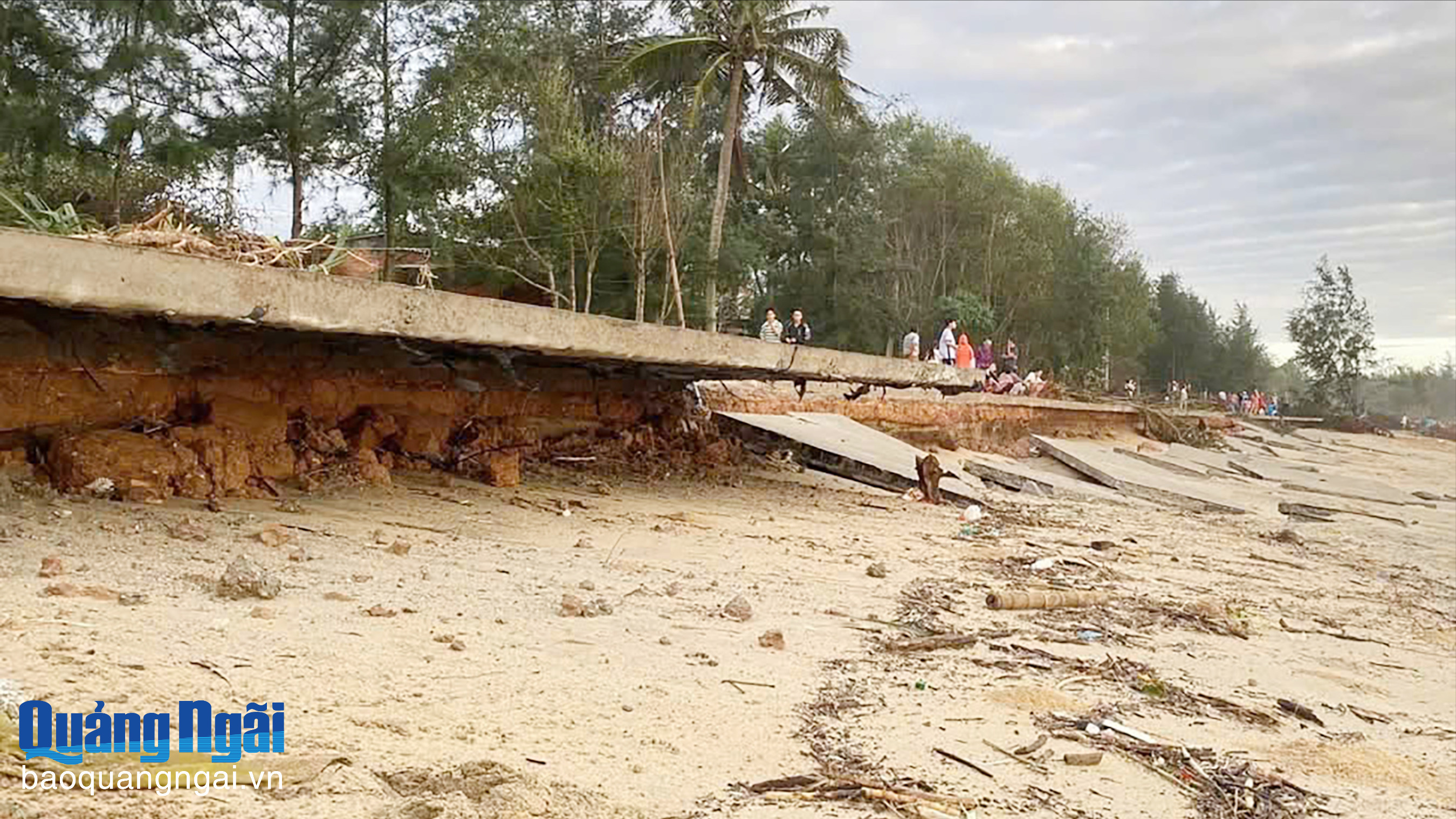 Đường ven biển ở xã Long Phụng bị hư hỏng nghiêm trọng do ảnh hưởng của bão số 13. Ảnh: ĐVCC