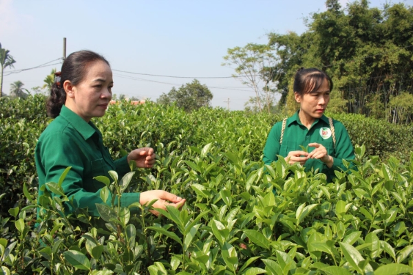 Thu hái chè tại Hợp tác xã chè Hảo Đạt, Thái Nguyên. Ảnh: Chu Khôi.