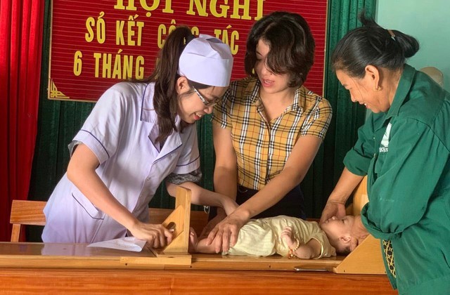 Nhân viên y tế tại tỉnh Nghệ An thực hiện các hoạt động cân, đo cho trẻ. Ảnh: CDCNA